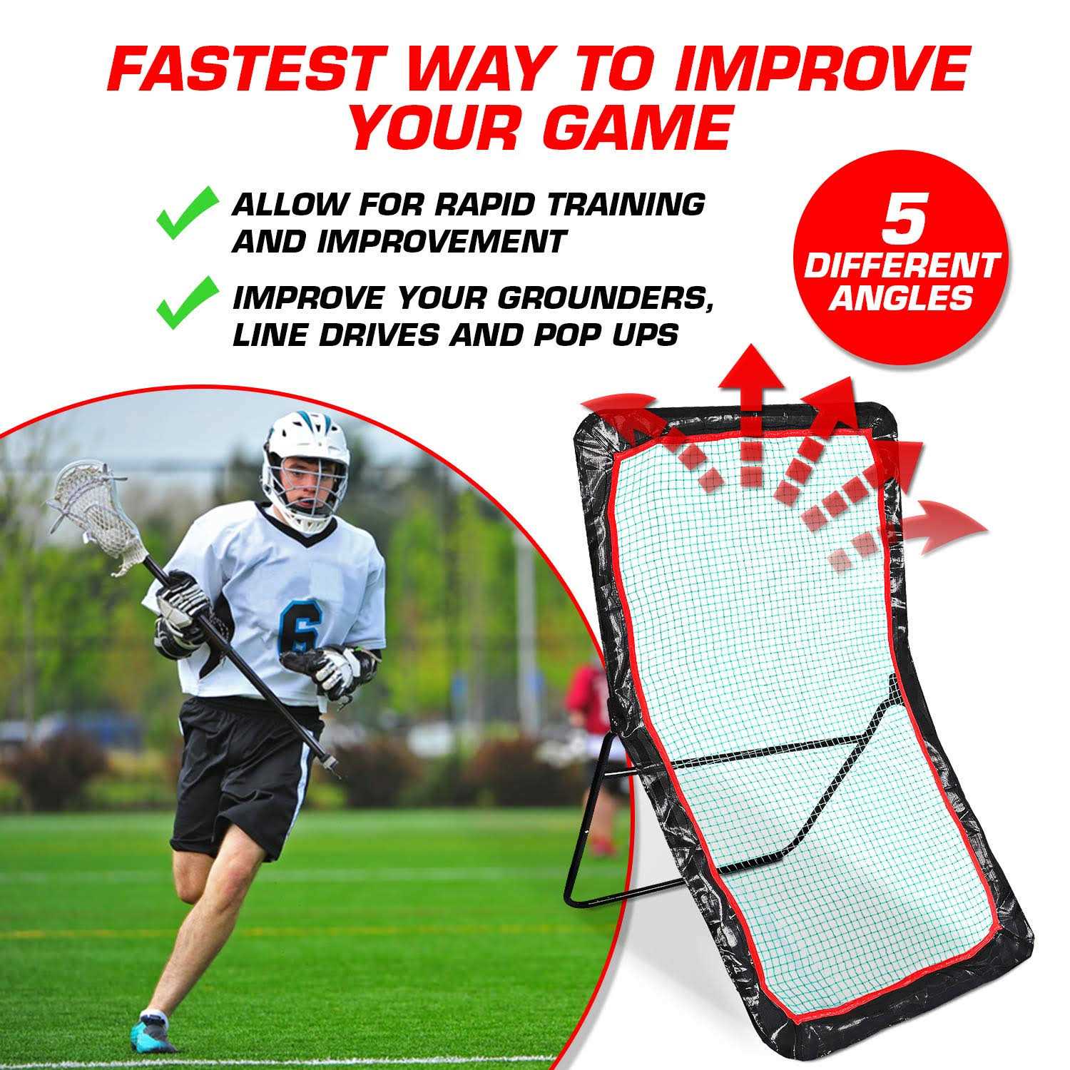 MASSIVE TARGET AREA: Rebounder is 4 feet wide by 6.5 feet tall giving over a 25 feet surface area TIME TESTED TRAINING TOOL: Fastest Way To Improve Your Game. 5 different angles allow for rapid training and improvement. Improve your grounders, line drives and pop ups. SUPERIOR VALUE: Priced to deliver value. Enjoy similar quality to other rebounders costing 50-100% more. STRONG BOUNCE BACK EFFECT: Easily adjust tightness to ensure you receive a strong bounce back effect. International products have separate terms, are sold from abroad and may differ from local products, including fit, age ratings, and language of product, labeling or instructions. International products have separate terms, are sold from abroad and may differ from local products, including fit, age ratings, and language of product, labeling or instructions.