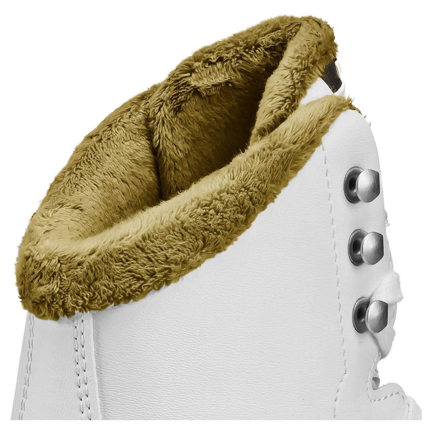 Enjoy the ice in warm comfort with Lake Placid Whitney ice skates for women. These figure skates in women’s U.S. shoe sizes feature synthetic uppers to keep feet dry, faux-fur lining for warmth, and Comfort Padding for a great fit. Beginners and intermediate level skaters will appreciate the firm ankle support as you balance, glide, and jump. Synthetic soles and edge-hardened, heat-treated Imperial Elite Stainless-Steel Blades provide maximum durability and toughness. Please sharpen blades prior to first use.