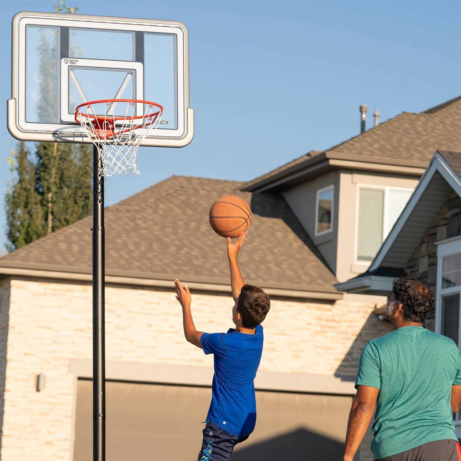 Is ball life? If the answer is yes, then it’s time to fulfill your destiny as a baller and choose the Lifetime 44-Inch Portable Basketball Hoop for your home. This portable basketball system lets you enjoy the joy of b-ball without the investment of installing a permanent hoop. The 44 x 30 x 2-inch backboard is crafted out of Shatterproof Fusion polycarbonate with fade-resistant graphics that last. This hoop comes with an all-weather net and classic rim, as well as a 27-gallon wheeled base and telescoping 7.5-foot to 10-foot pole. Play a game of HORSE, take part in a friendly pickup game, or just show off by dunking all day on your kids with the Lifetime 44-Inch Portable Basketball Hoop. Swish.