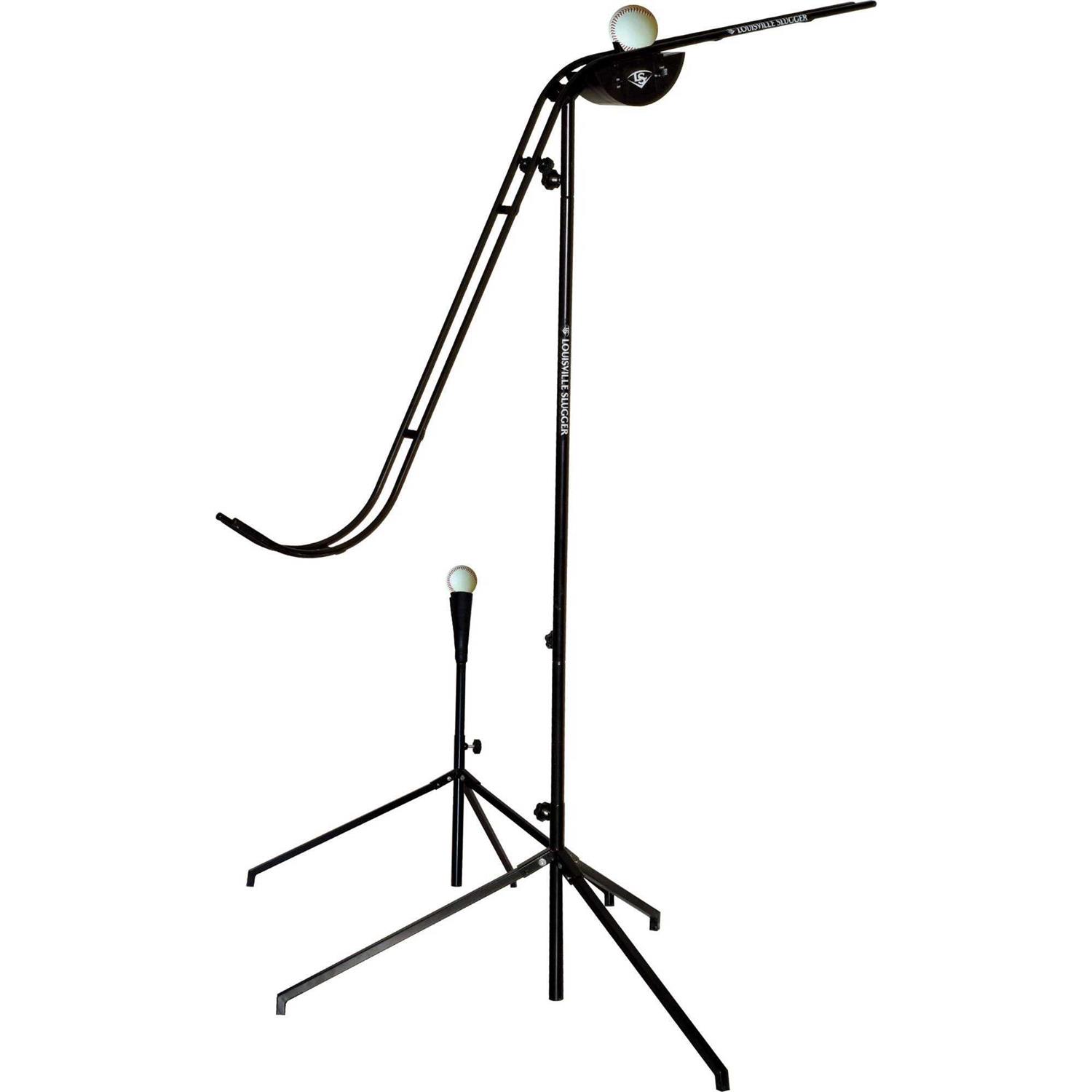 The Louisville Slugger Soft-Toss Machine /Tee Training System is designed to bring every player, coach and team to the top of their game. Forget about heavy and cumbersome equipment, and train with he Louisville Slugger Baseball Soft-Toss Machine / Tee Training System.Your coach or partner can now focus on improving your swing and not tossing the balls. This System throws perfect soft-toss with real baseballs, softballs, tennis balls and training balls. The collapsible design and compact soft-toss system allows you to take your training anywhere and train with or without a partner. Load the feeding arm with baseballs or softballs and set the release timer at 6/8/10 second intervals allowing you to get your swings without the need for a soft-toss partner to throw the balls. The unique slope arm tosses the ball perfectly every time towards the batter at pitch level for more realistic, game-like training. No more soft-toss from the side, popping up from below, or dropping from the top. This promotes the load-phase aspect to soft-toss leading to consistent and successful approaches at the plate. Its telescoping arm adjusts for batters of any height from beginners all the way to the pros.