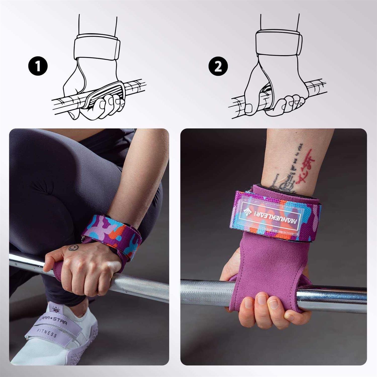 MANUEKLEAR Weight Lifting Grips, Leather Hooks Straps for Deadlifts, Pull-ups, Heavy Shrugs, Non-Slip Adjustable Wrist Wrap Gloves for Women with Padd