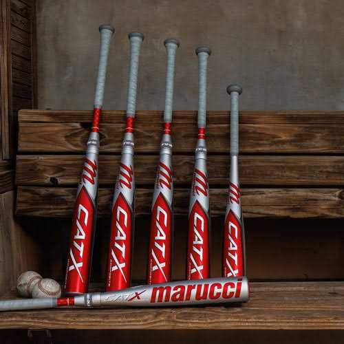 The Marucci CATX Composite is now available! The latest release of the Marucci CATX Composite series now incorporates a stiff, S-40 Handle and a Custom-Molded Handle Taper. Both were implemented to improve the swing of one of the best composite baseball bats in the game. Available in both BBCOR and USSSA, the CATX Composite baseball bats are suitable for players both young and old. Cat Bats have dominated the USSSA scene throughout the past decade and Marucci anticipates keeping it that way with the CatX Composite! Although it might seem tough to find any room for improvement from previous models, the CatX Composite includes a few new features that will take your game to the next level! Once again, Marucci has constructed this two-piece composite bat with some of the highest technology in the industry. The barrel is going to be contrived from the MDX Composite design that places the carbon fibers of the barrel in many layers and at many different directions to create a bat that is ultra-responsive! That composite barrel is locked into the composite handle by the OLS (Outer Locking System) Connector Piece. This connection system incorporates a threaded groove that internally locks the barrel and handle together. And then they complete the connection with the external sleeve that puts an extra hold on the connection point. The main difference between the CatX Composite from previous models will be the new S-40 Composite handle. This handle is ~8-10% stiffer than prior Cat bats, which will transfer energy faster from the batter to the ball resulting in unmatched performance! In addition, the CatX Composite includes a new custom-sized handle taper for a more ergonomic fit and improved bat control. Lastly, this Marucci USSSA bat will feel a little barrel-heavy.