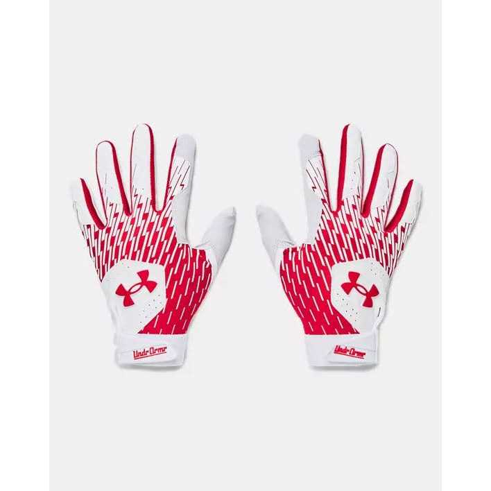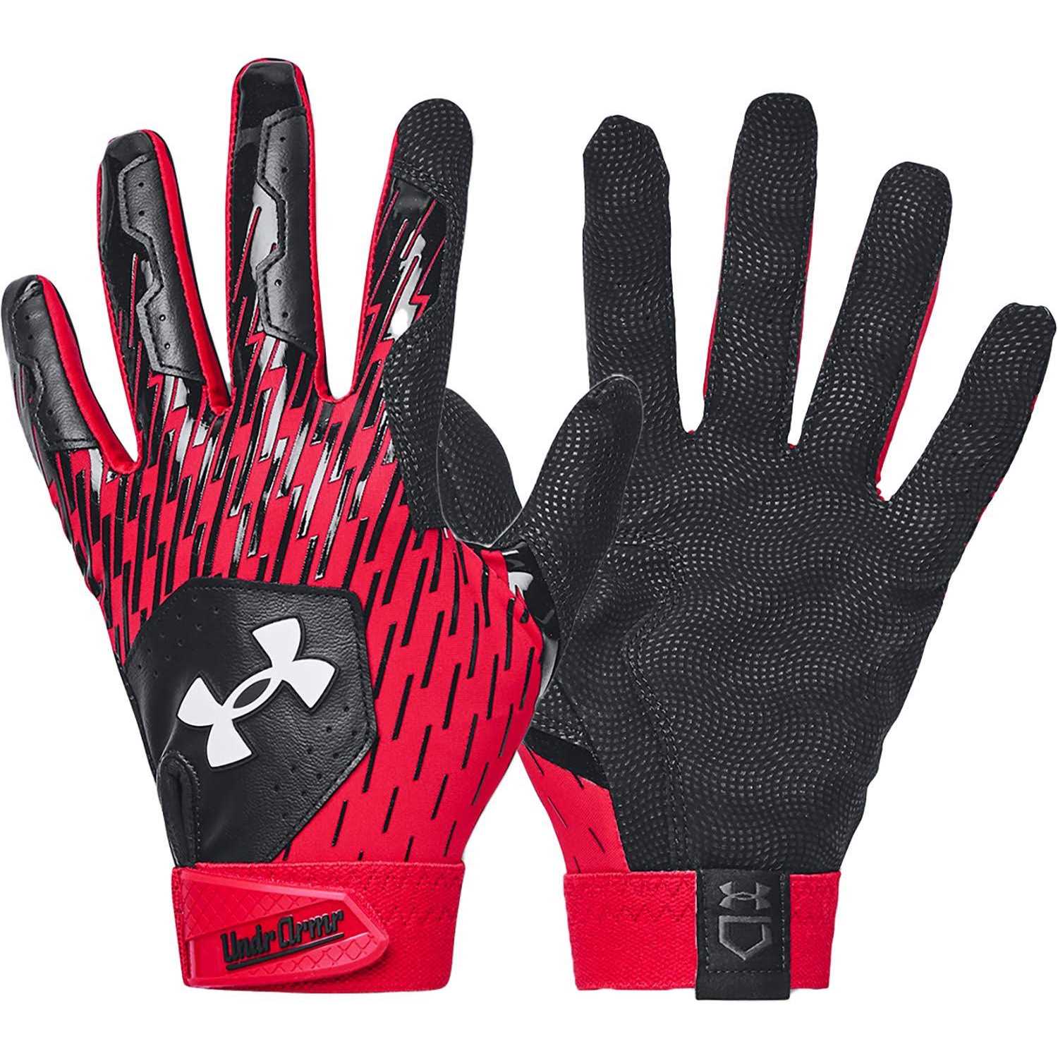 Built with HeatGear fabric to keep players hands cool, dry & light all game long. Available in 13 color models. Performance synthetic grip with overlays that add support and durability in all the right places. Perforations built over the fingers adds extra breathability. Elastic wrist cuffs with Velcro closure provides support & a locked‐in, powerful feel. Renowned Under Armour HeatGear technology wicks perspiration away from skin to provide dry comfort. Embossed UA Logo at the back of the palm. Internal UA Lockertag allows personal uniform number marking. Mens Sizes Small ‐ 2X‐Large. Available in 12 colors.