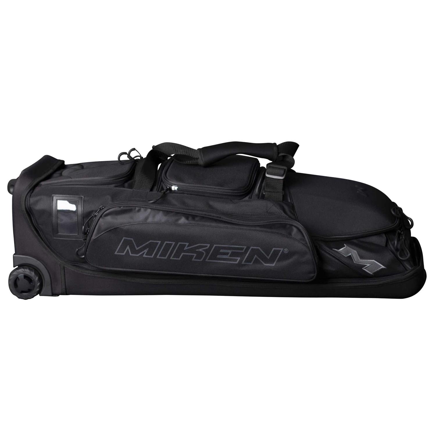 Miken Championship Backpack 2 elasticized neoprene bat sleeves. Durable “J.” style fence hook. Top valet tray with lined pocket for phone. Front storage pocket. Separate shoe pocket on bottom. Velcro strip for exterior batting glove storage. Easy to clean tarpaulin bottom. 600D Polyester.