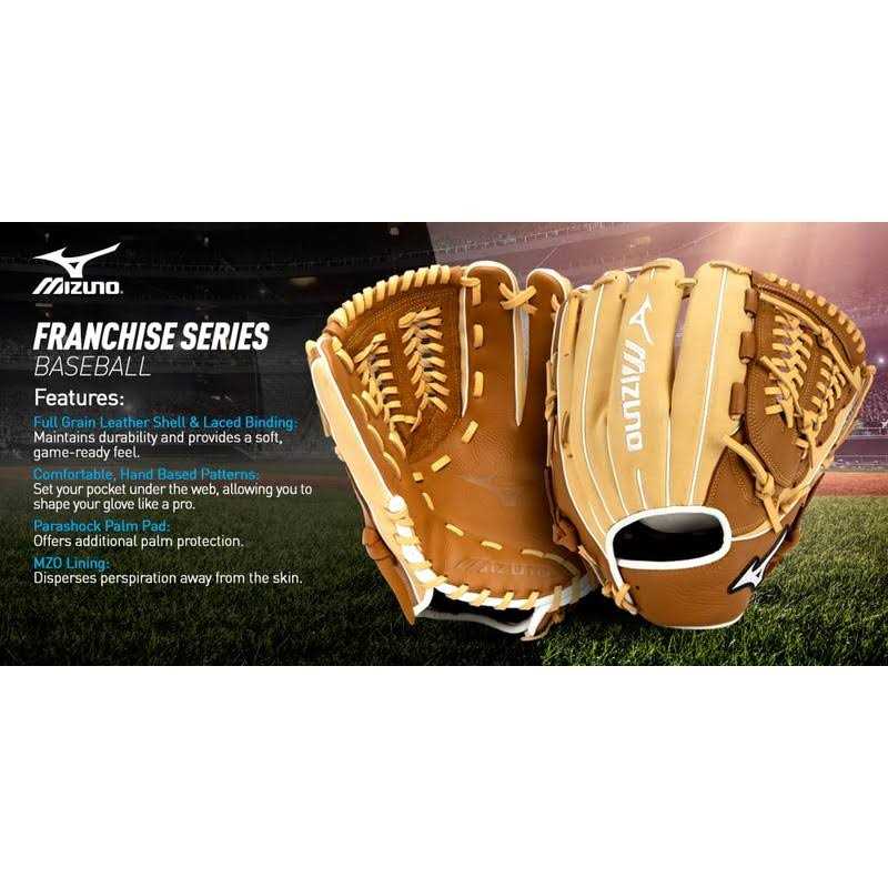 Mizuno Franchise Gloves are constructed using comfortable, hand-based patterns, which set your pocket under the web, allowing you to shape your glove like a pro. Full grain leather maintains durability and provides a soft, game-ready feel.