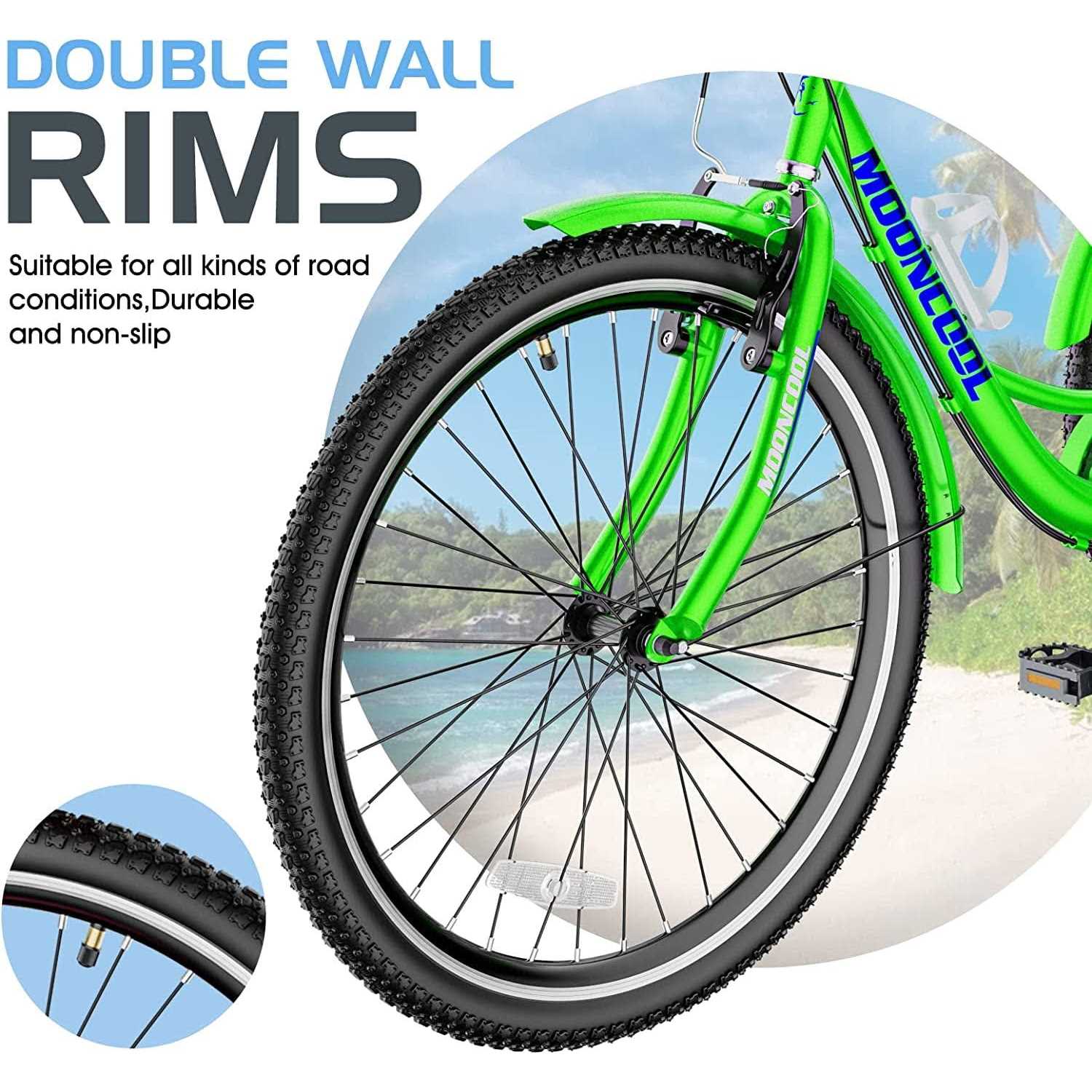 MOONCOOL Adult Tricycle 7 Speed, Three Wheel Bikes for Seniors, Adults, Teenager, Kids, Women, Men, 16/20/24/26-Inch Wheels, Cargo Basket, Multiple Colors. Our tricycles are made of high-quality iron. PLEASE MAKE SURE THE SIZE before purchasing: 16 inch wheel suitable for rider height 3’9 inch – 4’9 inch . (Suitable for age: 6-11 years old), 20 inch wheel suitable for rider height: 4’8 inch – 5’6 inch, 24 inch wheel suitable for rider height: 4’11 inch – 5’10 inch, 26 inch wheel suitable for rider height: 5’3 inch – 6’2 inch. MOONCOOL tricycle has a large rear basket, load up the conveniently basket with groceries, supplies, or whatever suits your daily shopping while staying in shape. MOONCOOL Adults Tricycles are equipped with user manual, assembly tool, water bottle cage. Perfect for leisure, shopping, exercise or any time/place you want. You can ride safely and comfortably on town streets, beaches or bike lanes.