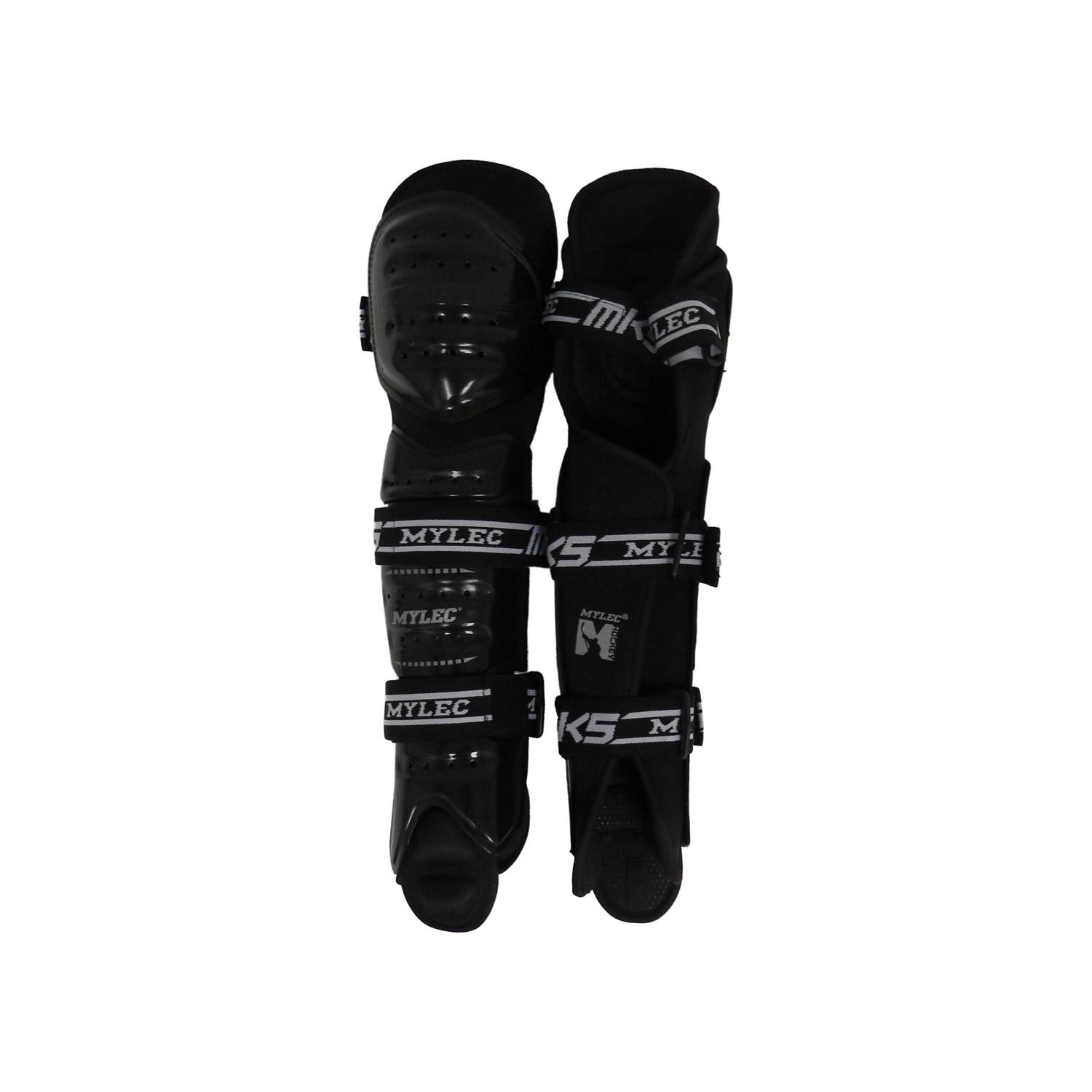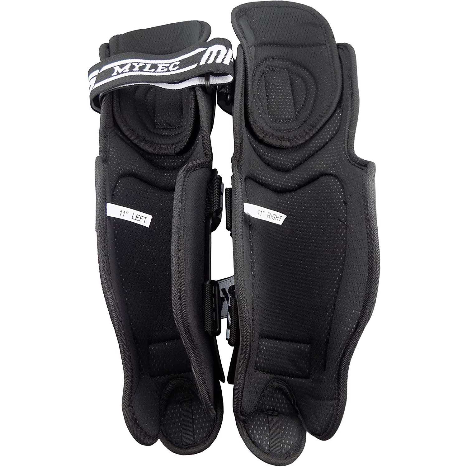 Shin Guards by Mylec. Details:A modern style shin pad that is form fitting to the shin and knee to enhance the ability of movement and protection throughout all aspects of the game. It features a lightweight & breather material along with a perforated plastic along with 3 wide 360 degree elastic straps to keep the shin pad stable and solid fitting, as well as an adjustable knee protection and additional metatarsal protection to give you the best protection for shin and knee coverage to help you perform at the highest levels.