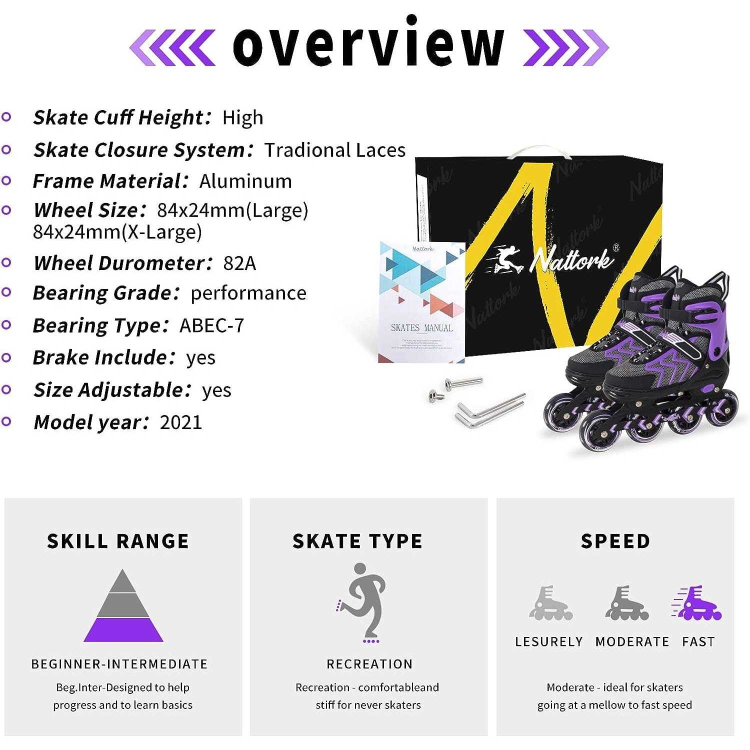 Nattork Adjustable Blades Roller Skates and Outdoor & Indoor