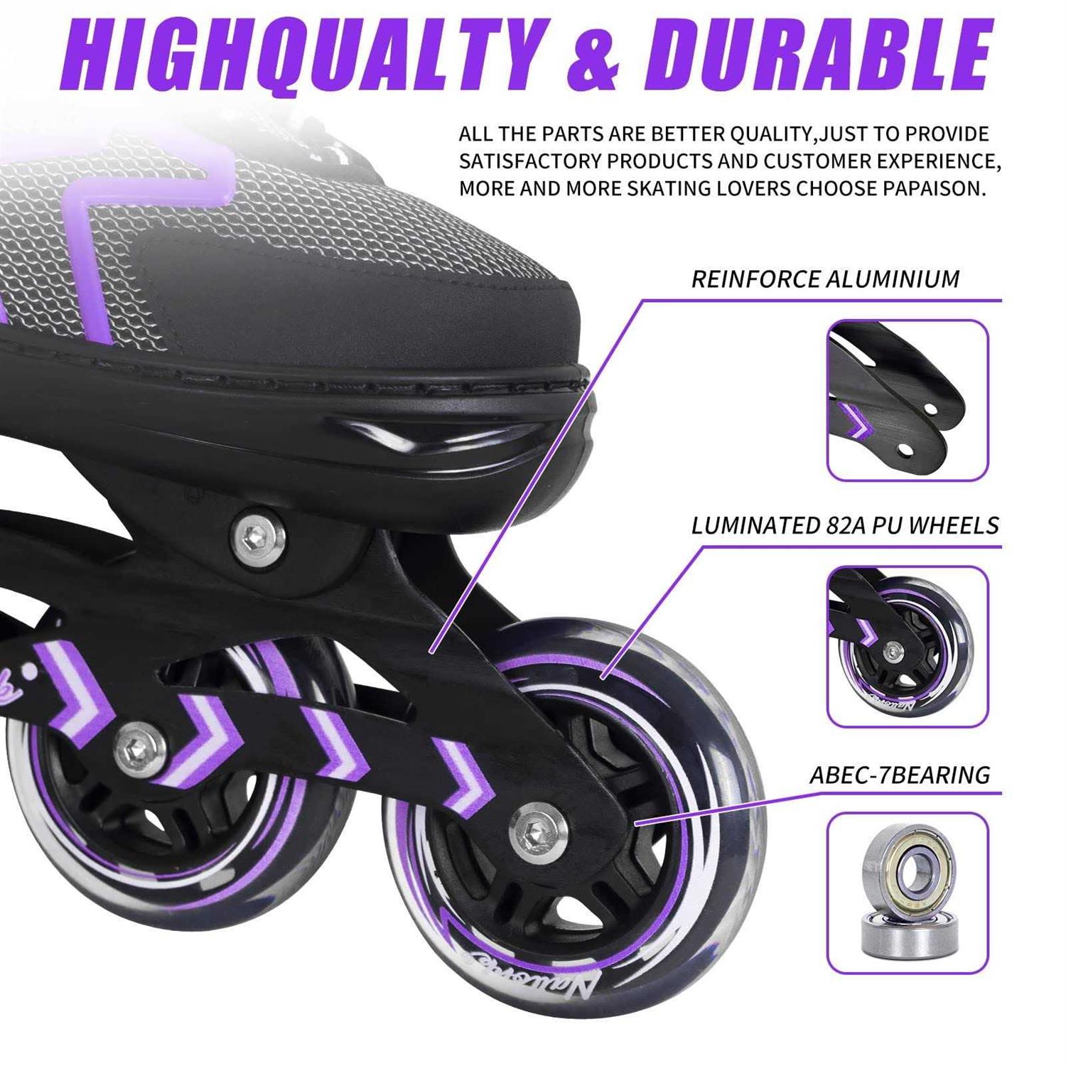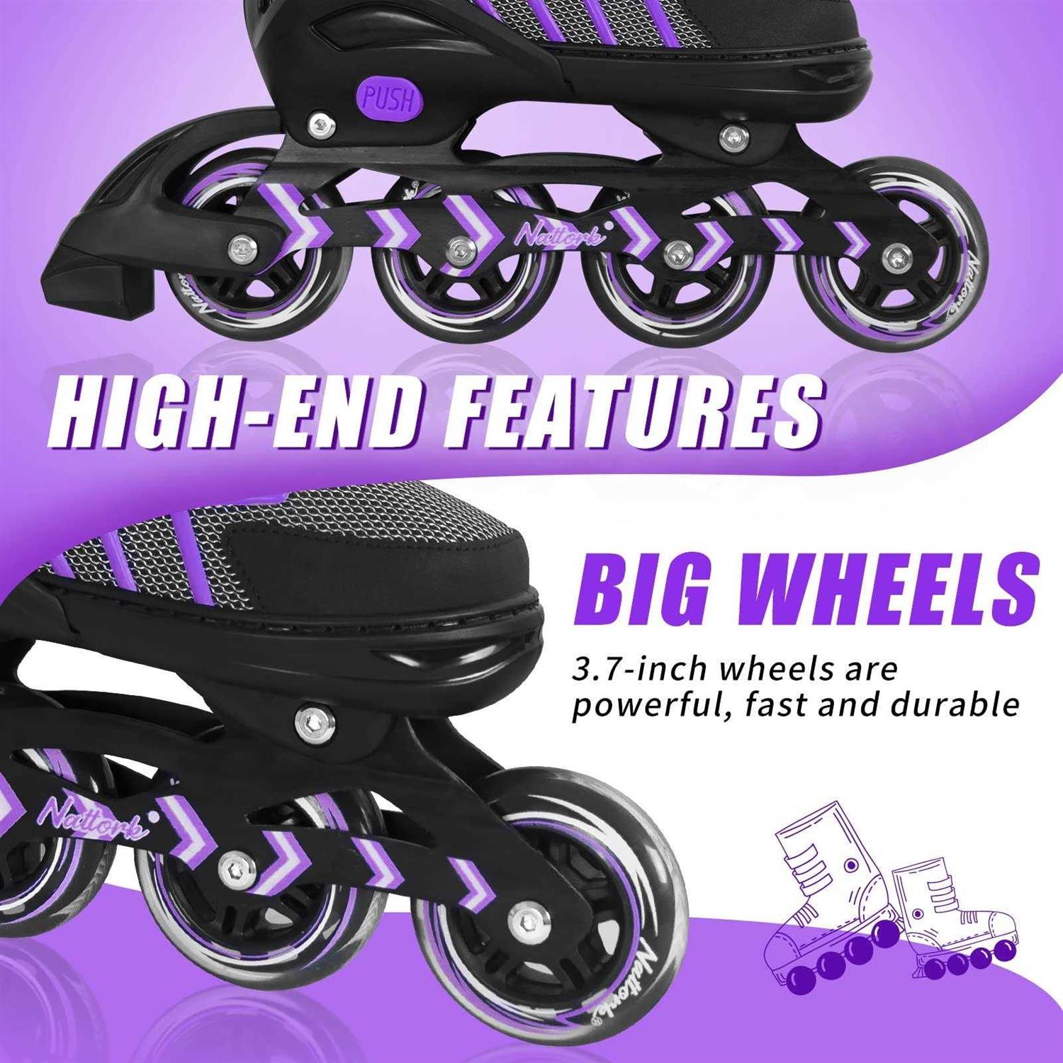 Nattork Adjustable Blades Roller Skates for Kids Girls and Boys,Outdoor & Indoor Purple Inline Skates for Adults Women and Men,B