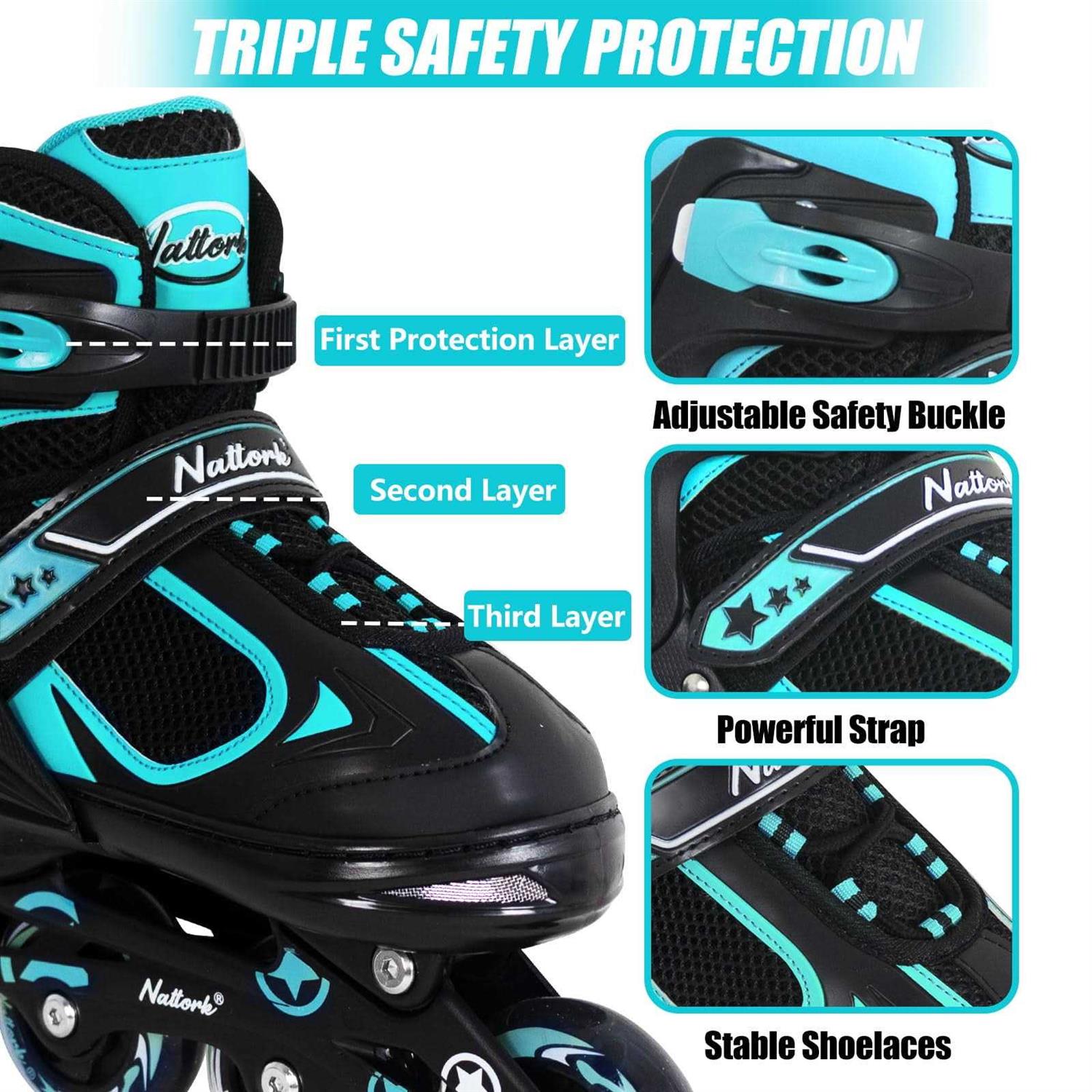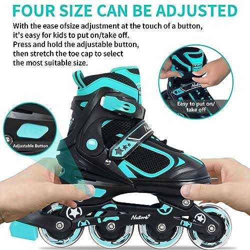 Nattork Adjustable Inline Skates for Kids Teal Small-Little Kid(10C-13C)