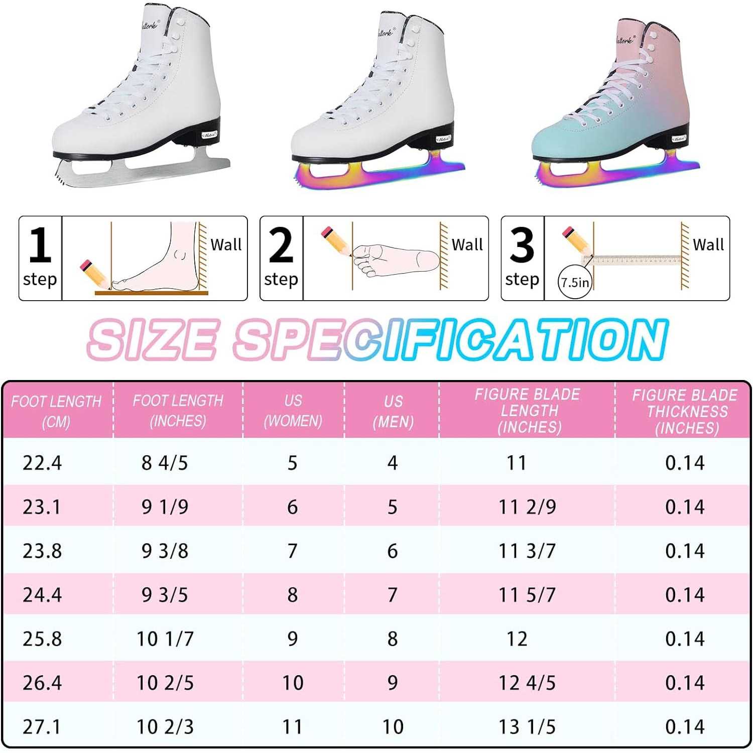 Nattork Figure Skates Excellence Stainless Steel Blades Ice Figure Skating with Enhanced Support Strength Performance and Ultimate