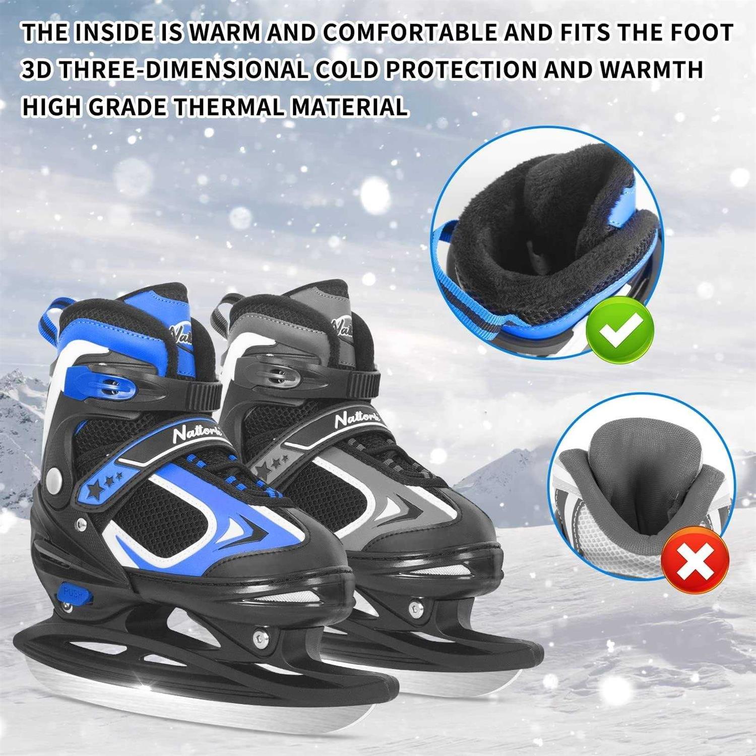 Nattork Kids Ice Skates,Ice Hockey Skates for Boys and Adjustable Reinforced Ankle Support Ice Skates Soft Padding
