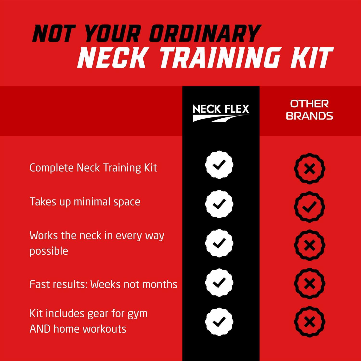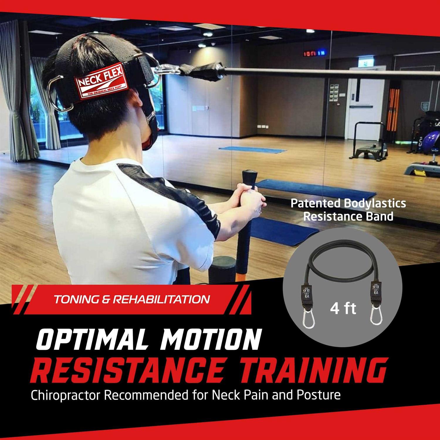 Premium Full Training Kit – Strengthen and train your neck for stability with The Neck Flex Original neck trainer! Out head and neck harness with multiple government patents comes with a 19-lb Bodylastics resistance band and door anchor–providing you with the ultimate neck workout kit for support, balance and safety. Reduces Risks of Injury – This strength training equipment works as a training device for neck strength and mobility. It’s made for athletes engaged in contact sports, fitness enthusiasts and people looking for ways to aid their rehabilitation and improve posture. It also promotes body and neck relief against muscle pain and stiffness. So, you can optimize movements while exercising your neck, shoulders, chest, upper back or spine. It comes fully adjustable, ensuring more stability and less strain in each flexion, rotation and extension. Premium-Grade Construction – Take your workouts to the next level with a durable back and neck strengthener! This head lifting harness supports your training with heavy-duty nylon webbing, non chafing neoprene padding and polished welded D-rings. Easy Set Up & Use – The Neck Flex back and neck workout equipment offers convenience for your gym and home workout or rehabilitation. Its carabiner clips attach and detach with no sweat, while the 4 feet long neck straps accommodate people of all heights. Feed your inner meathead and get freaking yoked with the Neck Flex Original Head Harness! Our neck trainer kit is masterfully built for athletes and enthusiasts looking for a device for strength training, home workouts and clinical use. The Pinnacle of Quality Construction Functional and versatile, the Original Neck Flex allows you to develop stability, balance and improved range of motion. The harness ensures your positioning is correct during resistance exercises to optimize neck and back training. Improving these areas will help minimize the risk and impact of neck injuries. The Neck Flex features robust materials and innovative construction with patent-pending anti-snap technology. Game-Changing, Innovative Designs This Chiropractor recommended tool offers a couple of pain-easing benefits to keep your workout productive and comfortable. Strengthens your neck and shoulders Reduces the impact of neck injuries such as whiplash, sudden force or strains Relieves neck and back pain Aids in rehabilitation training Improves posture Adjust The head strapon harness rests above your eyebrows and ears. Its neoprene padding is soft, breathable and non-chafing as it sits against the skin. Wear Put on our neck harness for weight training as you would any headgear. It ensures a secure, ergonomic fit around your head for optimum comfort and feel. Clip The neck strap fits any size or height—no need to wear the strap tightly since it only serves as a safety precaution. Attach Attach the headgear to a resistance band or cable pulley with more or less load to vary the resistance level. Welcome to the Next Level! Experience revolutionary workout equipment with the Neck Flex.