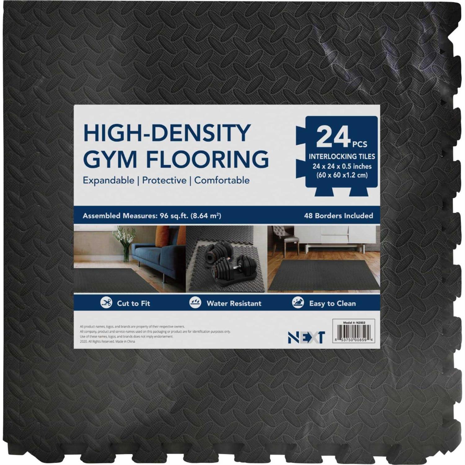 Next – 96FT Gym Flooring Exercise Mats – Black