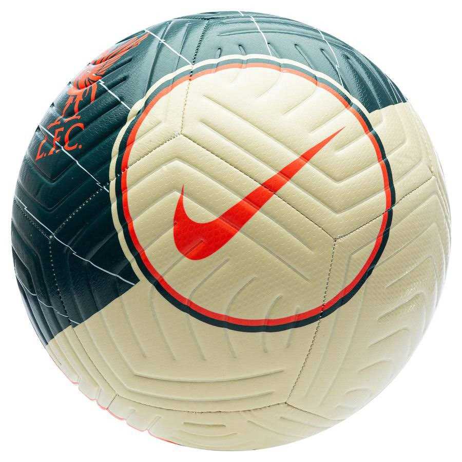 Ping it top bins with this Liverpool FC Strike Football from Nike. Coming in an Ecru and Green colourway that matches the away strip, this football is built from a blend of materials for long-lasting durability. It features Aerow Trac grooves for constant spin when the ball is airborne and has textured casing to give a great touch and feel for your foot. With a 12-panel design for a classic design, it’s finished with the Liverpool FC badge and Nike branding. PLEASE NOTE – Footballs arrive deflated. Need a pump? Just search product code 198554.