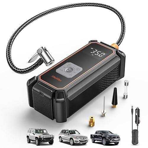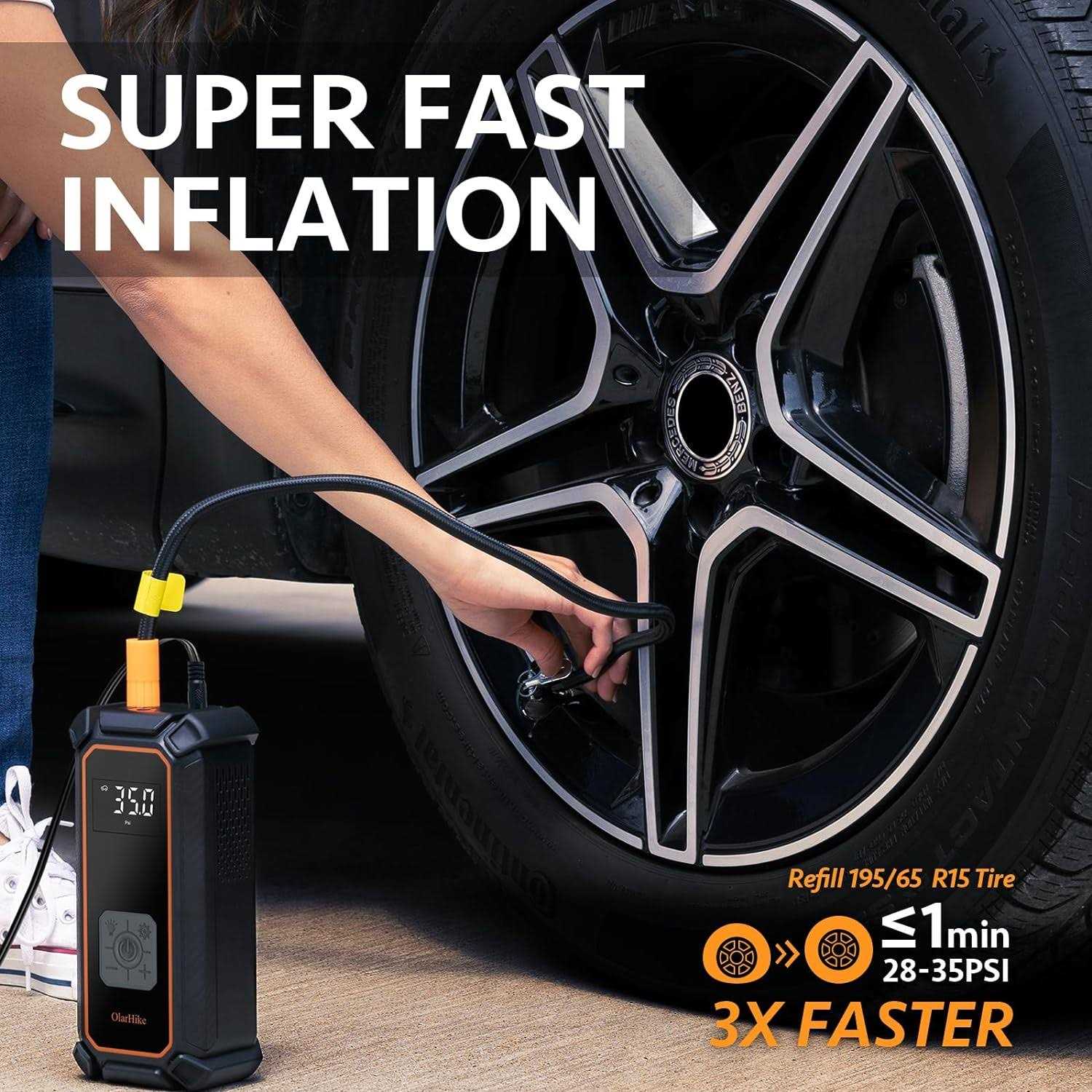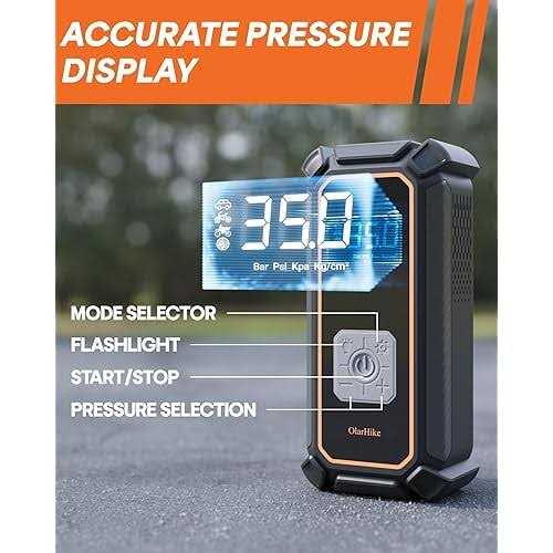 Fast & Unbeatable Performance: Elevate tire pressure from 28 to 35 PSI in just 40 seconds. Achieve full inflation in 4 minutes flat. Engineered for speed and optimized for cars, our tire inflator is tested on a standard 195/65/R15 tire for reliable performance. No Batteries Needed: Featuring a 10.2 Ft DC 12V power cord, our tire inflator plugs directly into a car’s cigarette lighter, removing the need for a separate battery. This means no more charging or waiting at gas stations for inflation. Simply plug it into your car, and you’re ready to inflate tires, balls, or other inflatable objects. (※Note: This model does not contain a built-in battery and needs to be connected to a cigarette lighter.) Accurate LED Screen: Equipped with an upgraded high-precision chip, our air compressor boasts improved tire pressure detection accuracy to ±1 PSI. The large LED display shows real-time pressure values, making observation and operation straightforward. The pump also automatically shuts off upon reaching the preset value to prevent overinflation, and memorizes the last preset value for convenience. This automatic shutdown design enhances safety by preventing excessive inflation. One-Click Operation: Choose from 4 preset inflation modes (cars, bicycles, motorcycles, and balls) with just one click. This set-and-forget philosophy allows you to relax without the need to constantly check the pump. Once the preset pressure value is reached, the air pump automatically stops. Versatile Inflation & Added Visibility: Inflate cars, motorcycles, bikes, and balls with ease using 4 PSI presets. This feature removes the guesswork from inflation, letting you start your adventures quicker. Additionally, the air pump includes a top-mounted LED light, providing visibility for inflating or changing tires in low-light conditions.