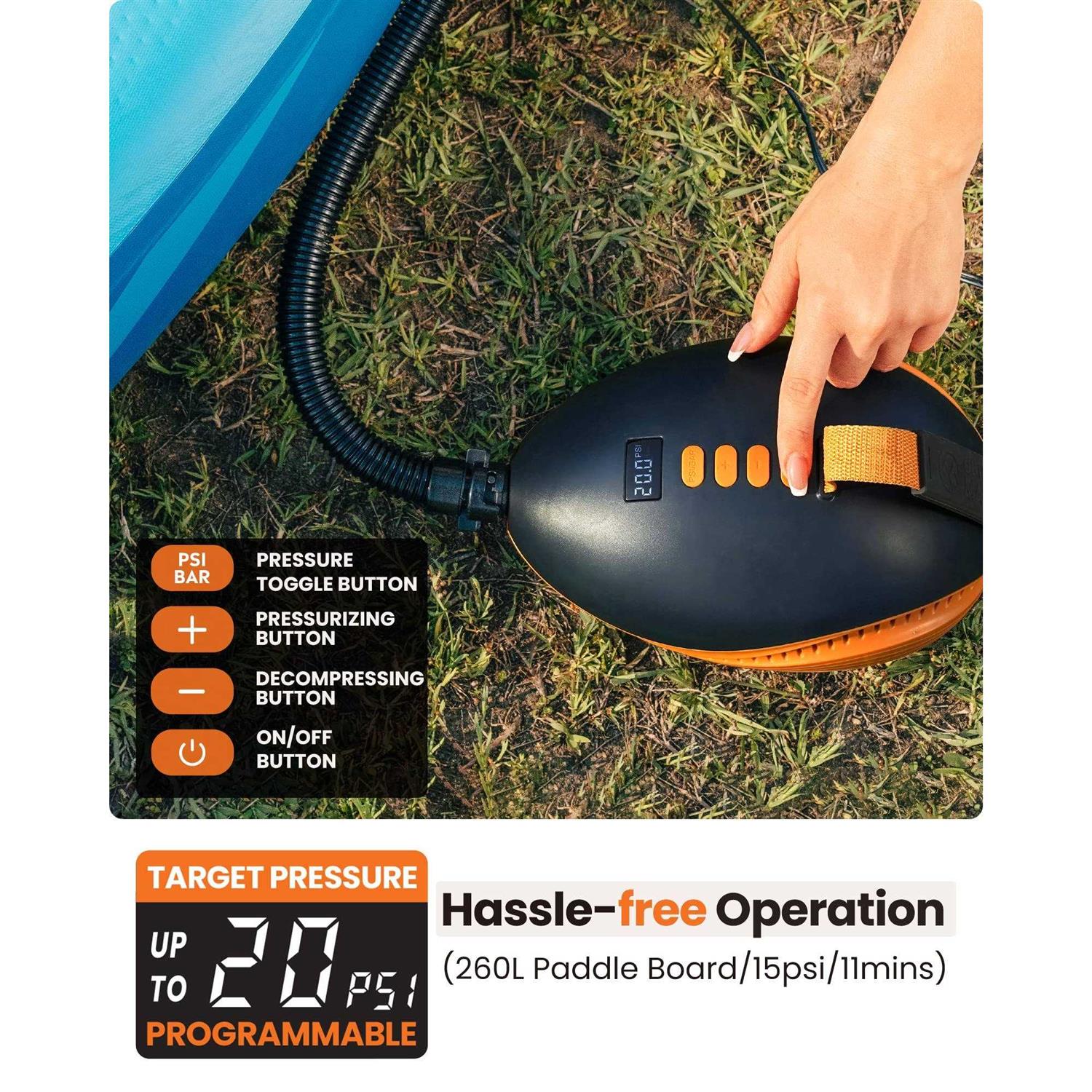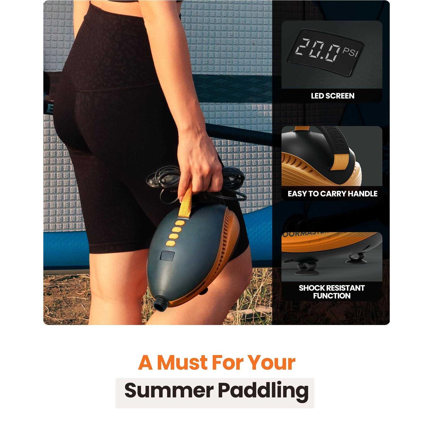 Outdoormaster 20psi High Pressure Paddle Board Pump Electric Dolphin -Quick Portable Sup Air Pump,Auto-Off &12V DC Car Connector Electric Pump