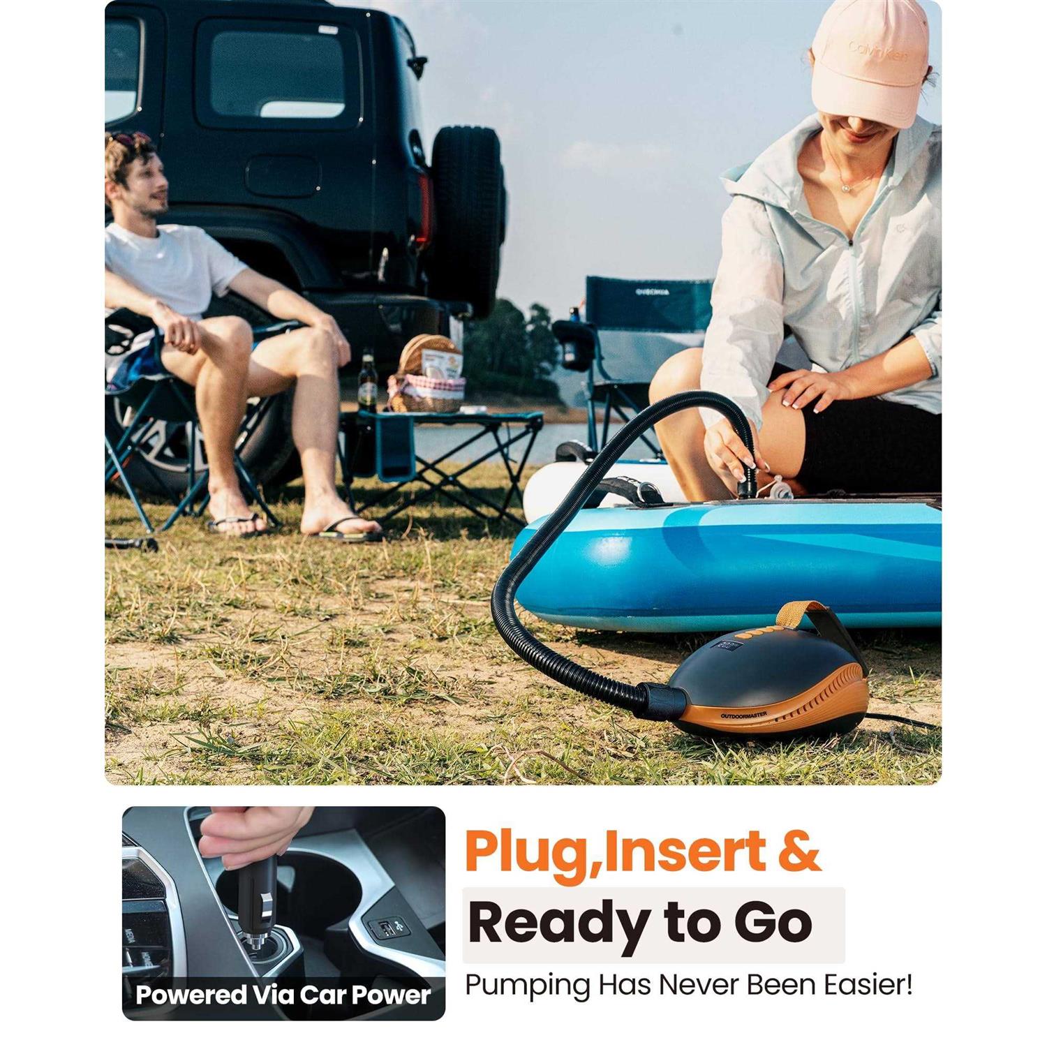 OutdoorMaster 20psi High Pressure Paddle Board Pump Electric Dolphin -Quick Portable Sup Air Pump,Auto-Off &12V DC Car Connector Electric Pump for