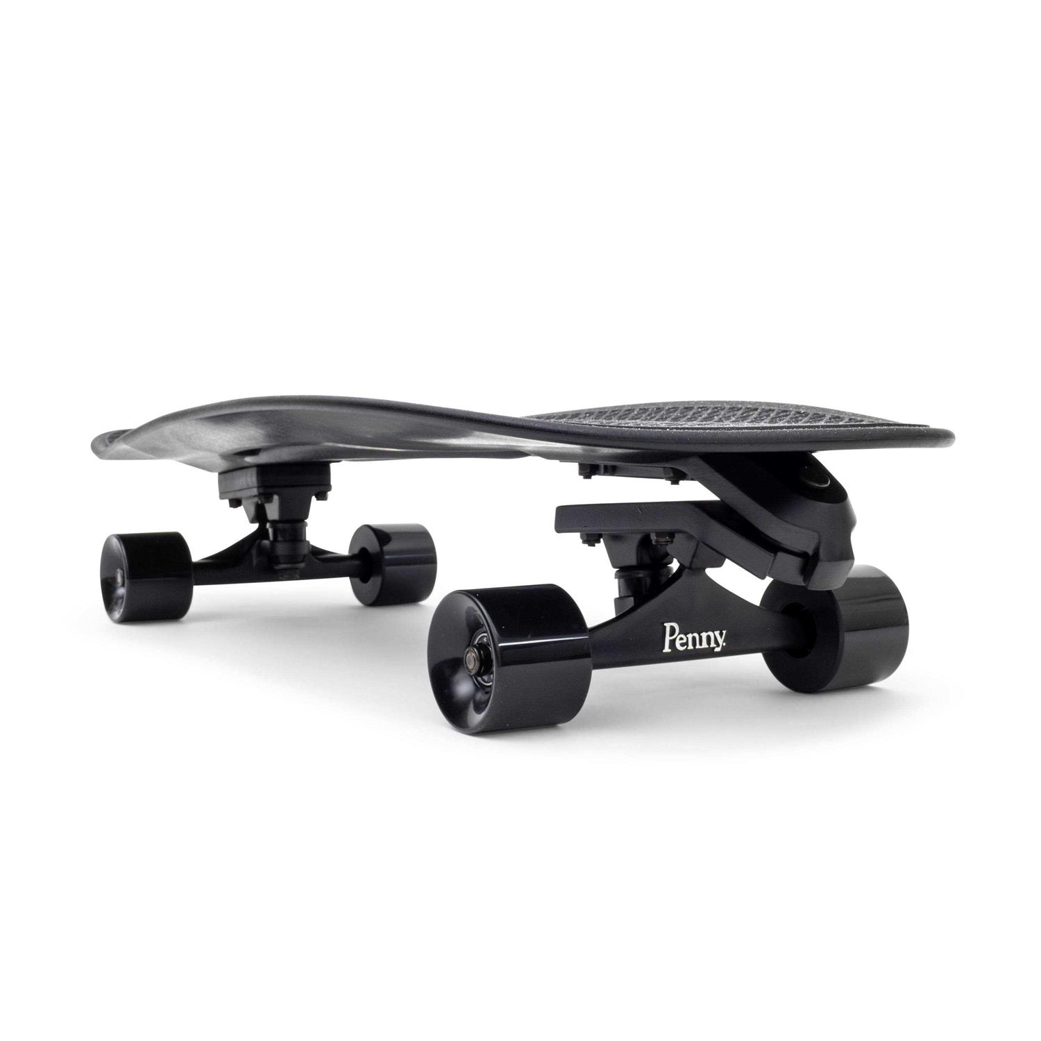 Blackout High-Line Surfskate is one of the sleekest looking skateboards ever released by Penny, and our best-selling style of all time. Recently updated, this premium board is totally black, making it even more stealthy than the original. This board is developed for skills progression and all time stoke by utilising Waterborne patented technology and the same quality components you’ve loved from Penny Skateboards. Flat-Day Fun 29″ W concave deck for extra rail control, developed for skills progression and all time stoke. Patented Waterborne Adapter For amazing turning radius and control, replicating the feeling of surfing on the streets. Built To Last Highest quality aluminium 6″ trucks, for enhanced manoeuvrability, control, and balance. Smooth Sailing Penny Wheels are speedy and soft, giving you the smoothest ride on every surface. Made For Speed Lightweight, high-speed, ABEC-7 bearings. Since Forever The original and the best.