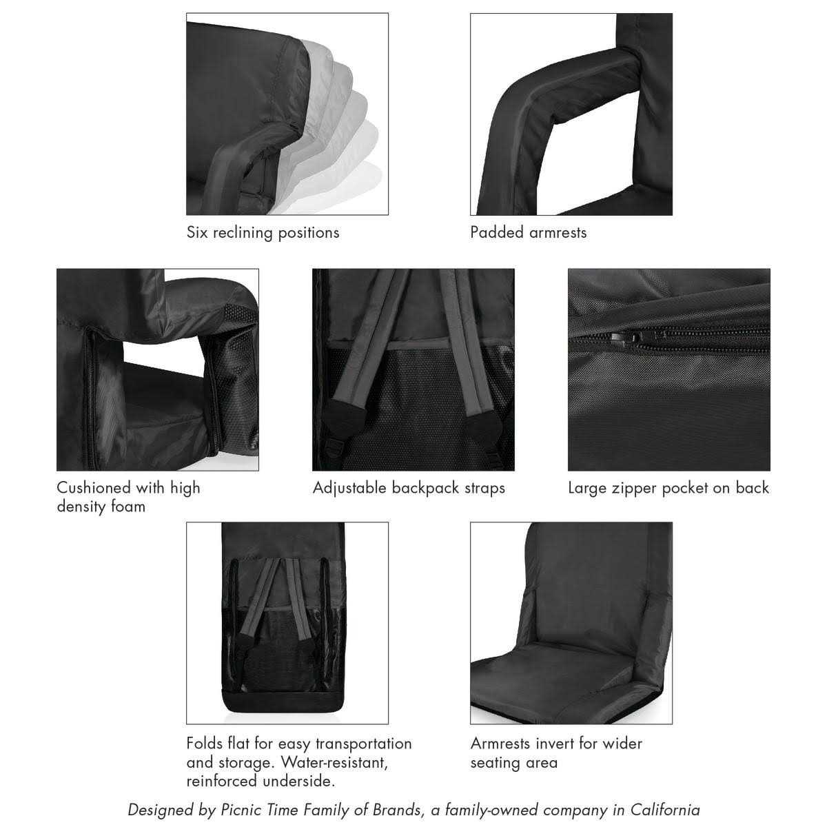 Picnic Time Chicago Cubs Ventura Portable Reclining Seat Black