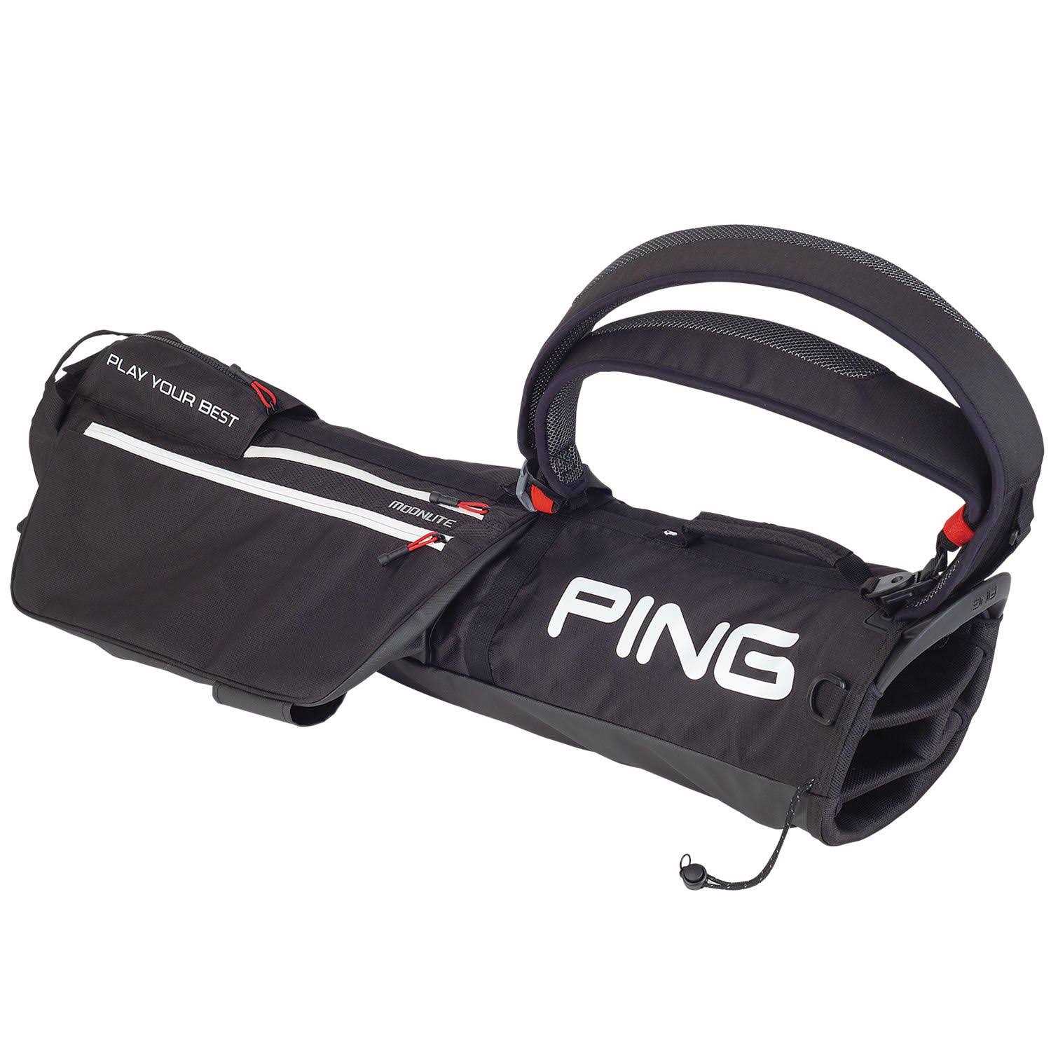 Ping Moonlite Carry BagAt 2.5 lbs., the iconic re-designed Moonlite bag is light even among lightweight bags, and it’s new four-way top holds 14 clubs without crowding. With added features like a zippered water-bottle pocket, this Sunday bag isn’t just for Sundays. 4-way top 2.5 lbs. 5 pockets 8L pocket volume Convertible straps Holds 14 clubs New 4-way top Stretchable mesh range-finder pocket New zippered water-bottle pocket Water-resistant belly 300D polyester.