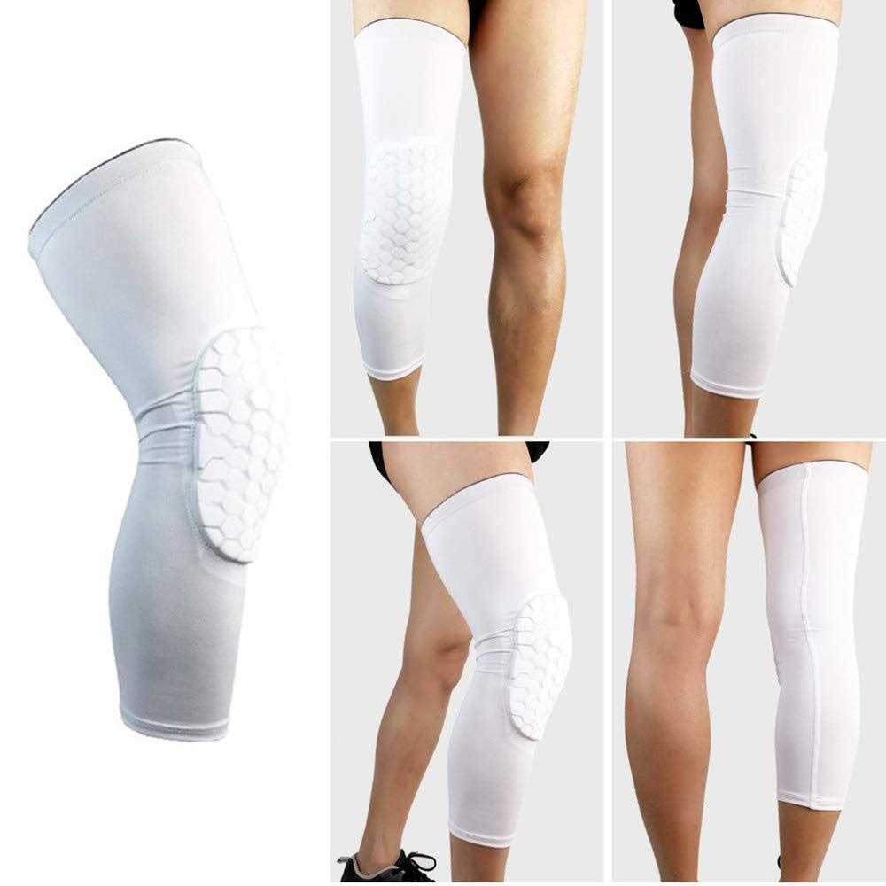 PISIQI Knee Compression Pads Long Leg Sleeve Brace Protection for Basketball, Football & Volleyball 2 Sleeves White, S