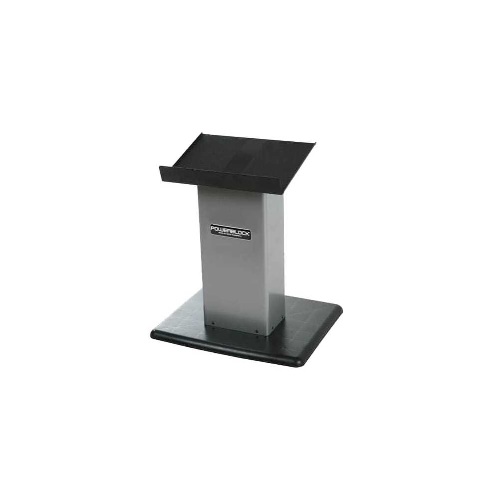 The PowerBlock Large Column Stand can hold weights up to 130 lbs in each hand. It has 4 storage positions down the center for the 2.5 lb chrome adder weights. It comes with the color coded weight selection chart. It has a foot print of 18″ x 22″ and a height of 28″. This stand should be used with any PowerBlock model that offers adder weights with the handles, as it has adder weight ports on the top of stand to store the adder weights when not in handles. The Large Column Stand would be appropriate for the Sport 9.0, Sport 5.5, Elite Sets,Personal Trainer Sets or Pro Aluminum sets. Available in silver.