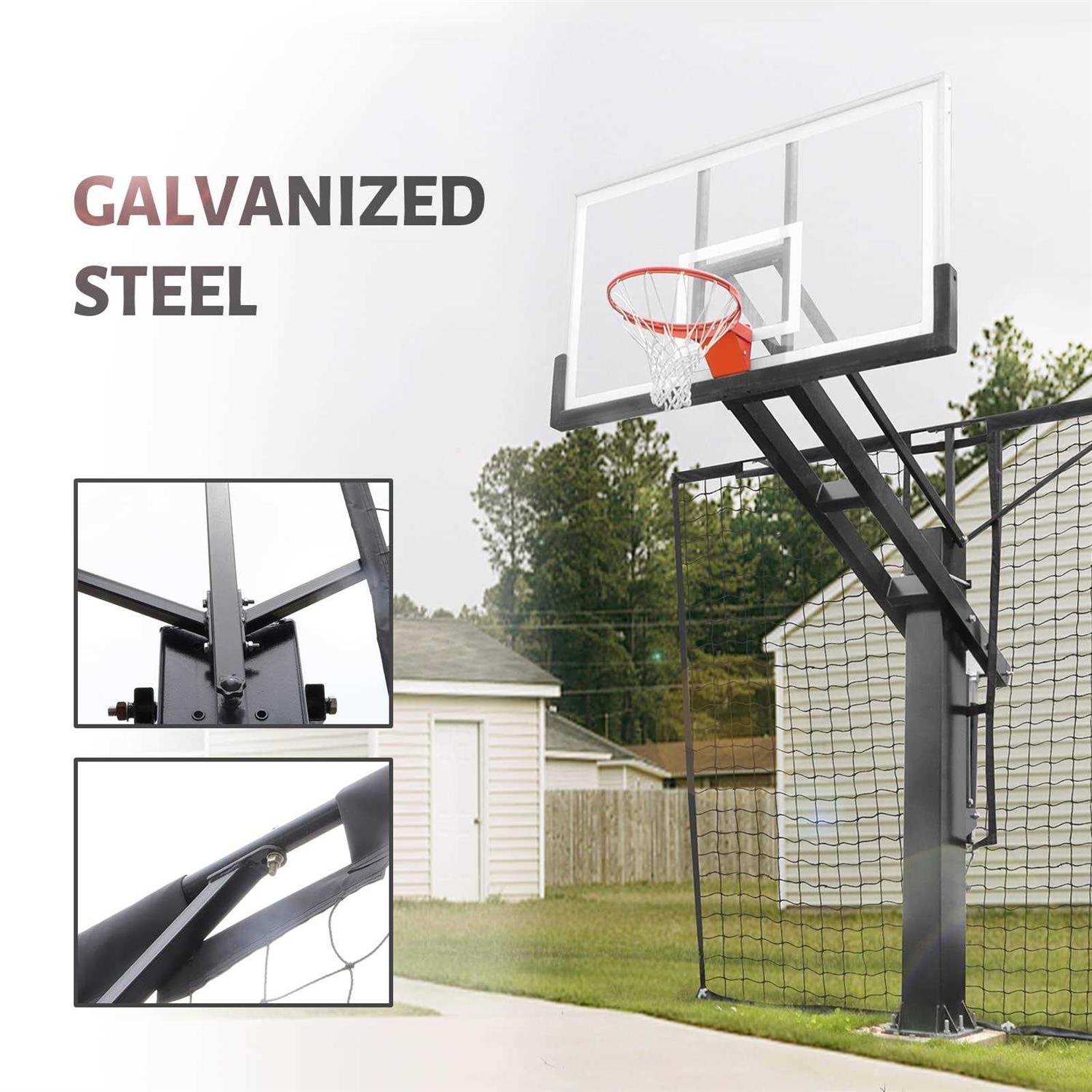 【Available in All Seasons】:Built with a tough galvanized steel frame and high quality outdoor UV-resistant nylon net,the basketball defensive net system will hold up in all kinds of weather. 【Easy & Quick Installation】:Install the screw in the main pole of the basketball hoop,the easily assemble the arms outward and stake the bottom of the net into the ground.The net can be easily removed and stored.( Please check the size before purchasing!) 【Better protection of the area behind】:The massive net with good rebound back into the court spans 12ft wide and 10ft high.As big as it is, it is still transparent enough to not be distracting in the backyard. 【Increase pitching time】:This returns net will save you from trips back and forth and allow you to keep shooting long hrs without tiring himself put when shooting alone. 【Package included】:Massive UV-resistant 12’x10’net,galvanized steel and net assembly ,weather resistant mounting parts & hardware. Basketball Yard Guard Defensive Net System – Heavy Duty 12FT x 10FT Rebounder with Foldable Net,Basketball Returns Net Made for Basketball Hoops with a 12”x8”, 8”x6”, 6”x6” or 5”x5” Main Pole.