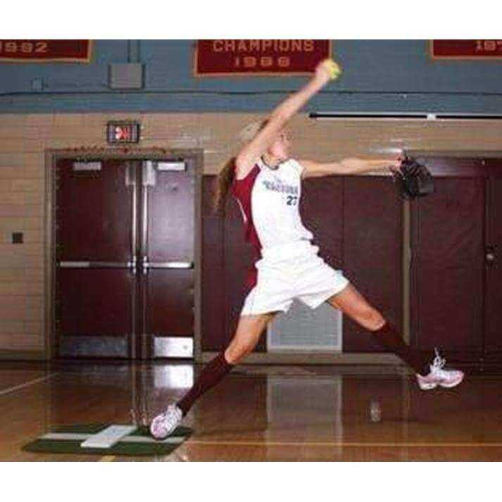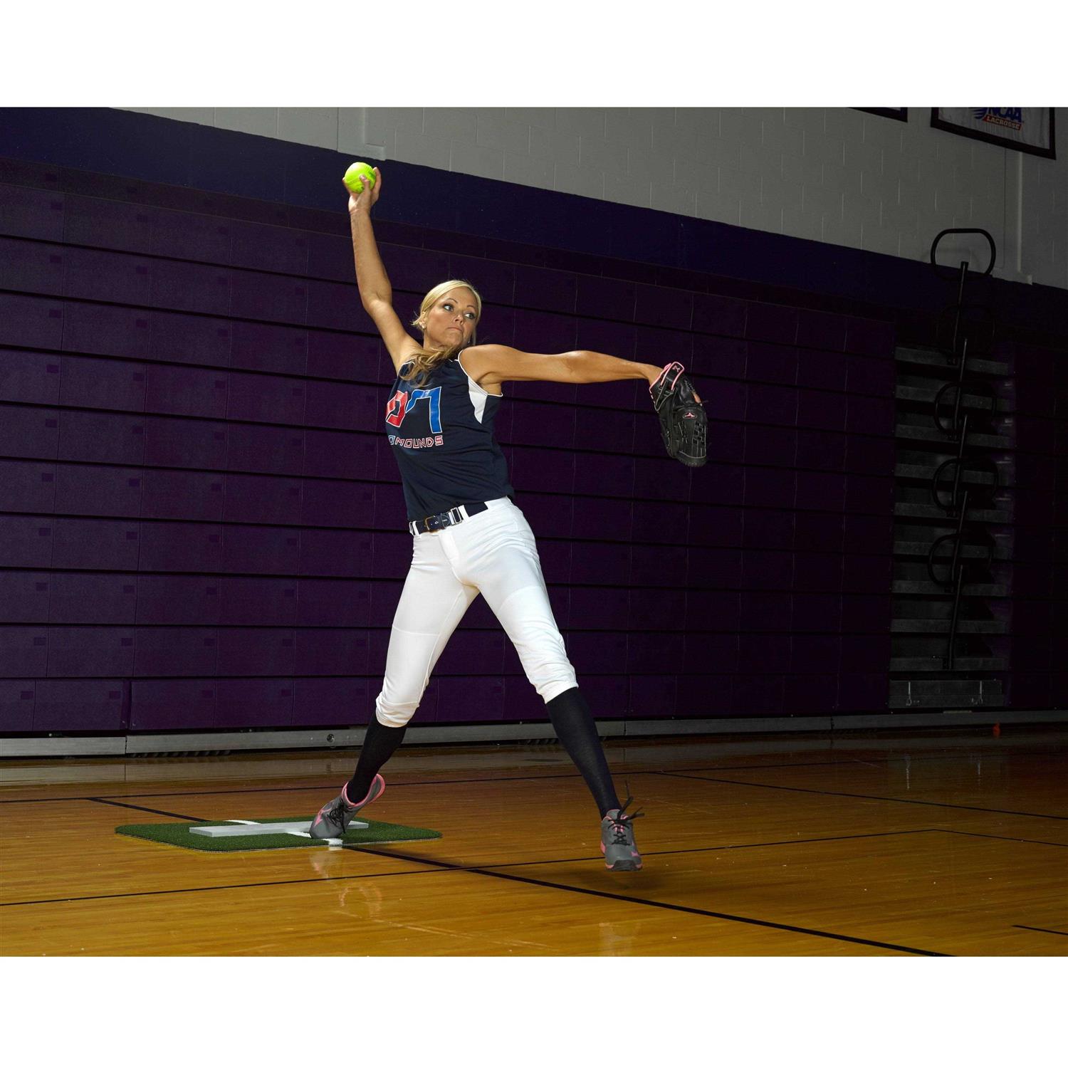Softball Pitching Mini-Mat with Power Line Take your softball pitching skills to the next level with the Jennie Finch Mini-Mat. This compact and portable softball pitching mat is great for indoor practice. The built-in regulation pitching rubber helps promote proper pitching mechanics, while the non-slip backing provides a safe way to practice. Softball Pitching Mat Features Non-slip backing to keep the mat in place indoors Very portable and easy to store Green colored turf 3′ x 2′, 8 lbs.