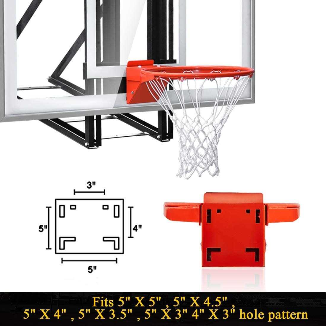 - The basketball rim only Fits 5″x 5″ , 5″x 4″ , 4″x 3″,5″x 3″ Hole Pattern backboards.[