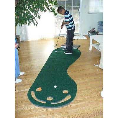 Hone your putting skills with this fun 3-by-9-foot putting green. The kidney-shaped green’s three cups give you plenty of practice targets, while the built-in sand traps are designed to catch missed shots. The green also offers a high-quality putting surface designed to stay smooth over time. High-quality putting surface stays smooth. Built-in sand traps catch missed shots.