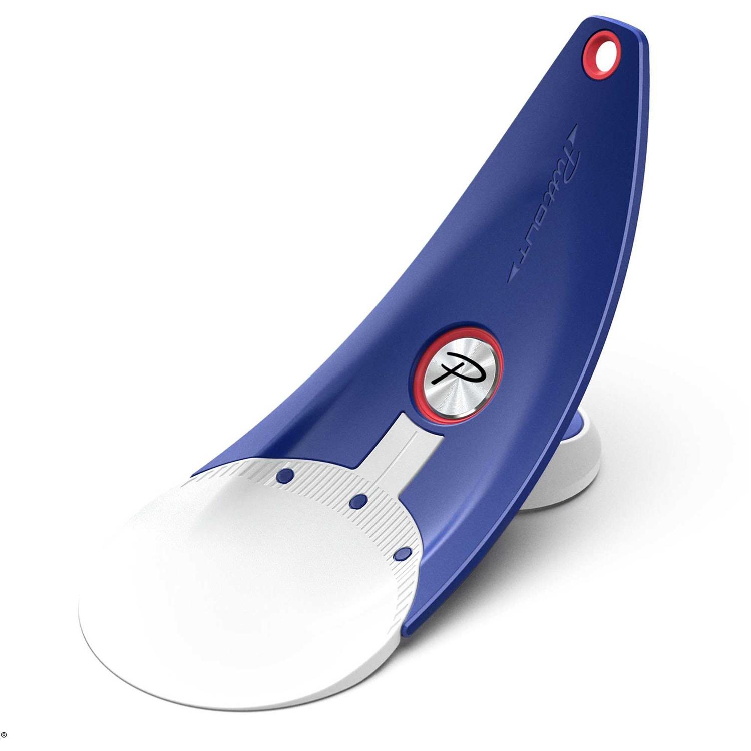 PuttOUT have taken their original pressure putt trainer to another level with improved features, including; multi targets, high visibility micro target and alignment stick support. The three smaller dot targets allow the player to focus in and use them either as another common target — especially for those who prefer to aim towards the back of the cup on putts, but can also be used to allow the player to adjust to slight breaks of the putting surface in their practice. The introduction of a new, ideally more visible ‘pop-down’ target is based on feedback from golfers noting they would sometimes “lose the aim point” from their standing position and eye angle when the micro-target was in the ‘open’ position. Improved with a new clearly visible target for the perfect putt. Addition of an alignment stick holder towards the top of the trainer’s ramp. The be paired with the player’s existing alignment stick setup, replicating the ‘String Drill.’ This training aid is designed to simulate the exact conditions of putting into a real hole on the green by its ground-breaking parabolic curved design, with each successful putt being returned the same distance it would have gone past the hole if it had missed – great feedback for getting the pace just right.