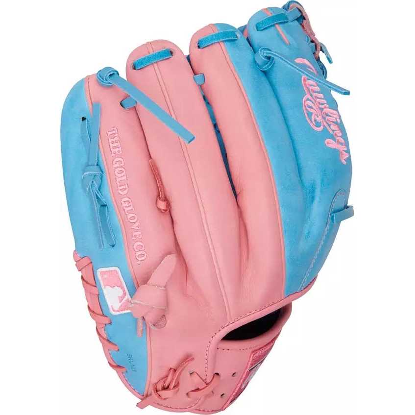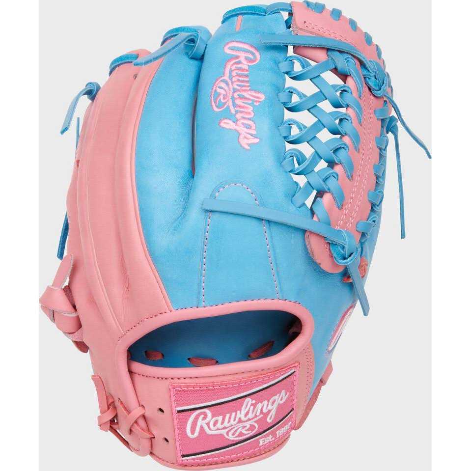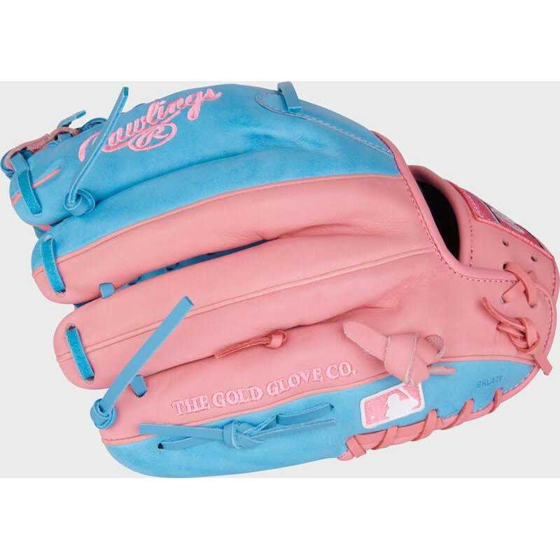 This Heart of the Hide 11.5-inch Infield Glove will make you a fan favorite! First, there’s the fresh and funky pink and blue colorway, showcasing a vibrant design that matches the electricity of your game. In addition, this glove’s modified Trap-Eze web gives you perfect balance from anywhere in the infield, including the pitcher’s mound! The 11.5-inch 200 pattern is a favorite among pro infielders thanks to its balanced shape and quick-transfer pocket. Plus, like all Heart of the Hide gloves, this model features the ultra-premium steerhide leather that’s made the Heart of the Hide name legendary. Get your Rawlings Heart of the Hide 11.5-inch infield glove today!