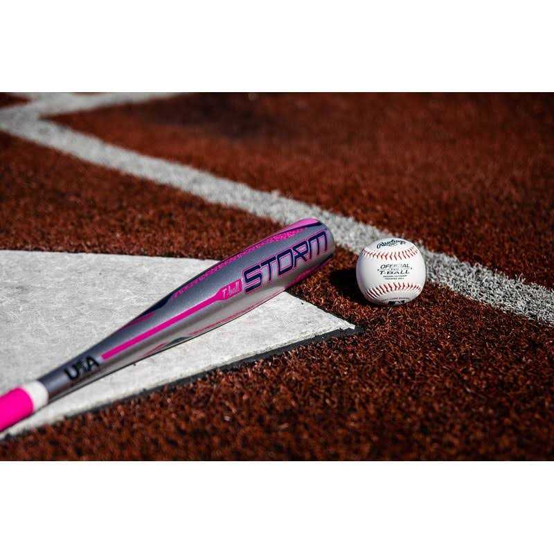 The Rawlings 2020 Storm Youth Tball Bat is the perfect bat for youth players ages 7 and below. Its lightweight composition and enlarged barrel make getting hits easier than ever. Not only will this bat exceed performance expectations, but the metallic silver, navy and hot pink design will make this bat the envy of every kid at the park.