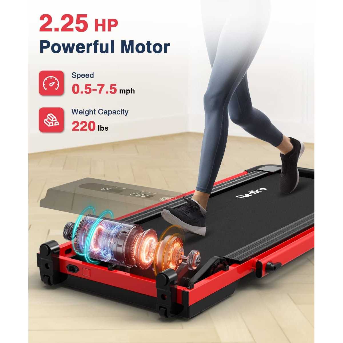 Redliro Under Desk Treadmill 2 in 1 Walking Pad, Portable, Folding, Electric, Motorized, Walking and Jogging Machine with Remote Control for Home