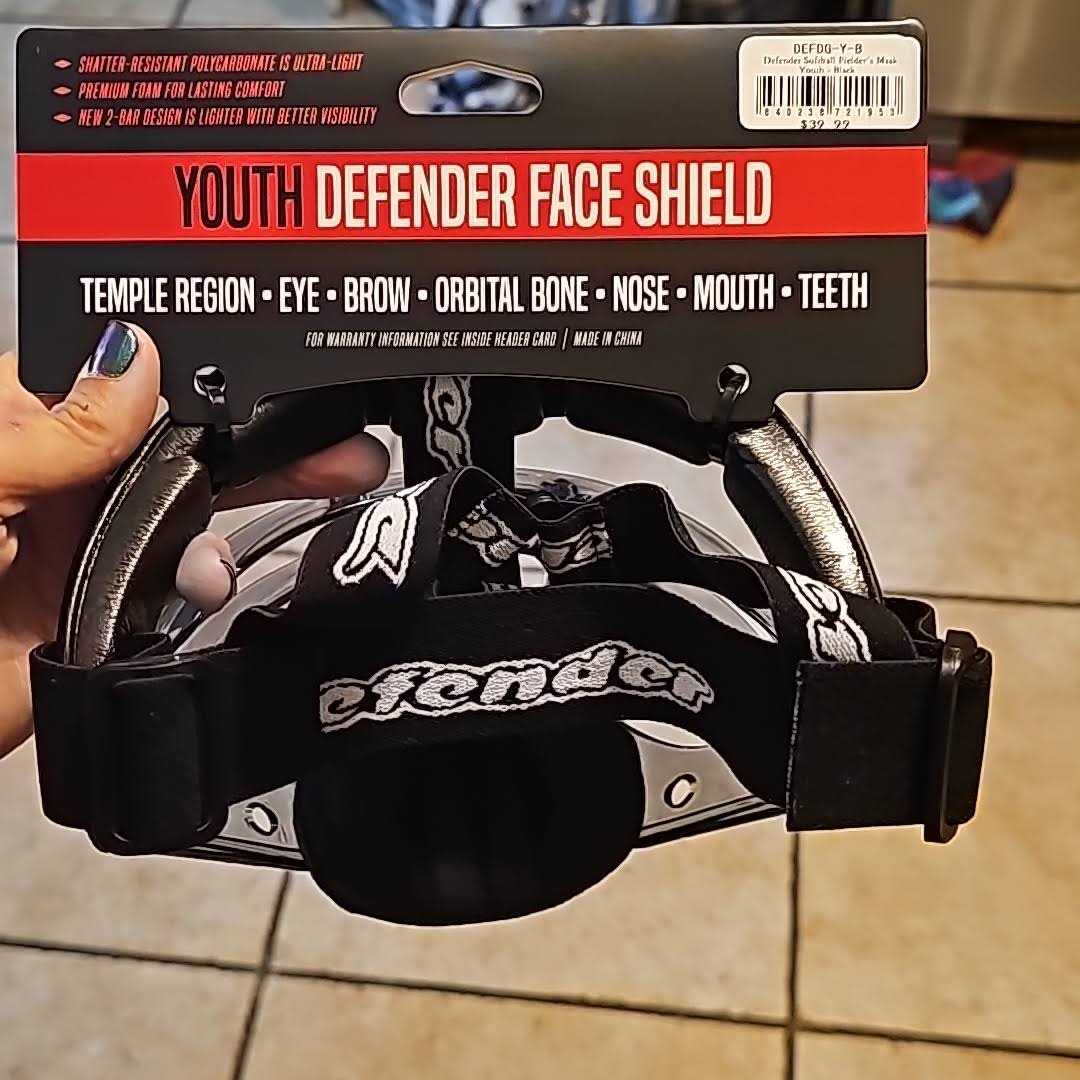 Protect your face on the field during your next baseball or softball game with the Adult Defender Shield. This shield features a mask that allows you to play ball without the worry of being struck in the face by a bad hop or line drive. An adjustable elastic strap fits securely around the back of your head, and a chin cup and eyebrow pad provide extra comfort throughout the entire game. A removable ponytail strap is also available.