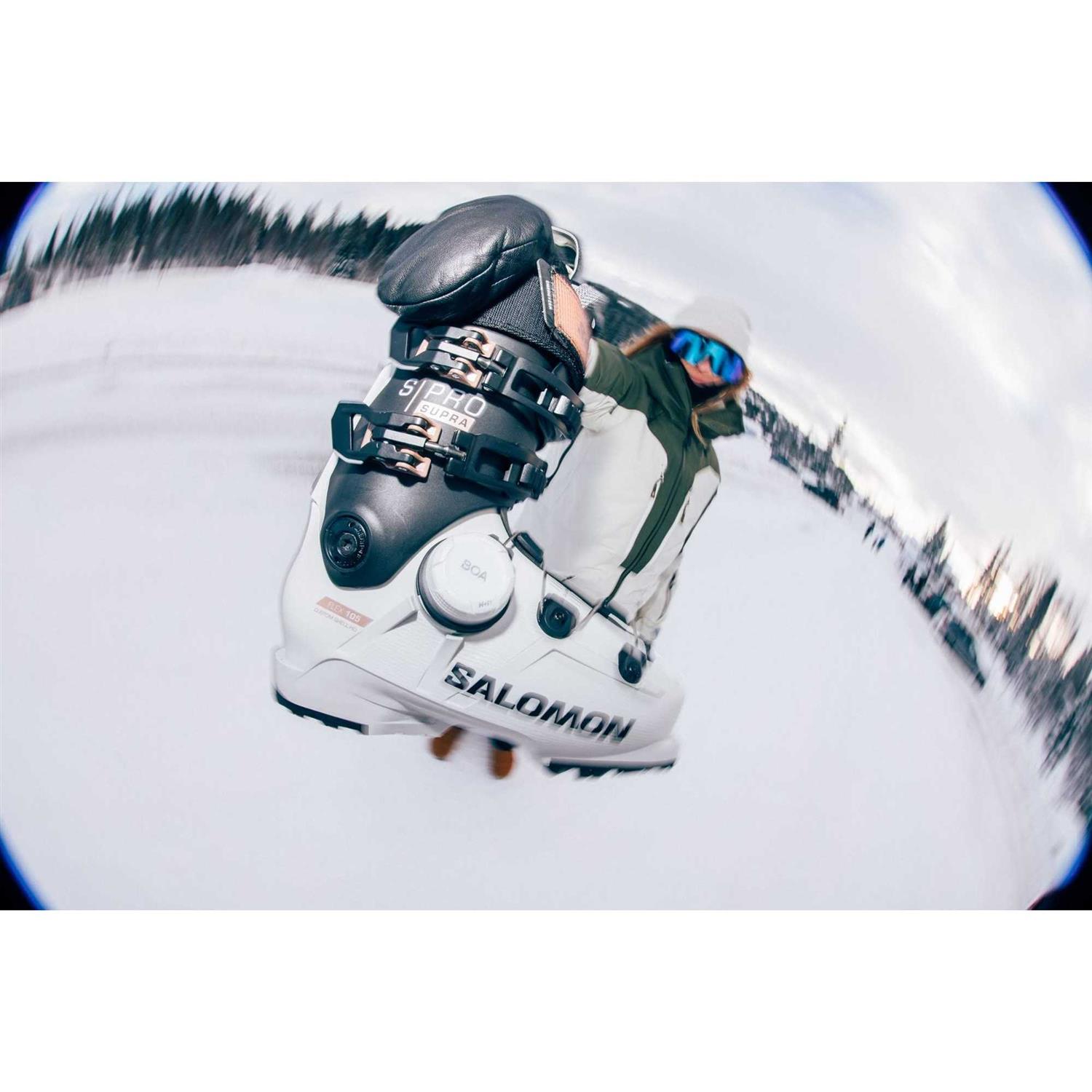 The next dimension in fit. Challenging traditional boot constructions, Salomon’s Supra BOA 105 W ski boots have been designed to offer women a new standard of perfect fit. Our ExoWrap Construction combined with the BOA Fit System provides a micro-adjustable, precision fit and a targeted wrap around the foot that can easily be adjusted throughout the day.