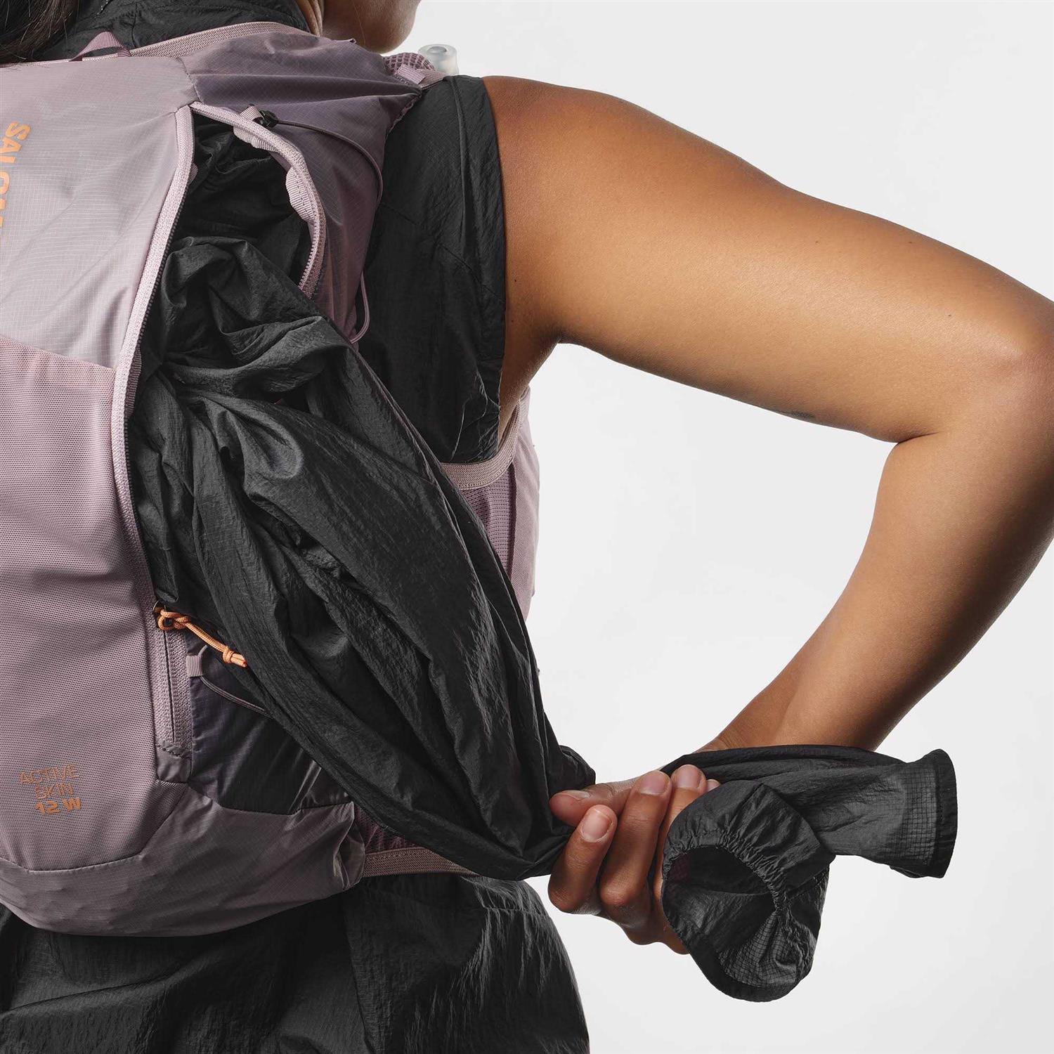 The Active Skin 12 Women Set Quail/Moonscape/Sun Baked is a women’s trail running backpack from Salomon.It features a Sensifit construction adapted to women’s morphology, giving you a bag that fits as close to your body as possible for greater freedom of movement and optimum comfort. What’s more, with its minimal weight of 245g and side compression straps, you’ll hardly feel it! Designed to give you easy access to everything you need during exercise, you won’t have to stop to collect your gear. At the front, the Active Skin 12 Set is equipped with two flask slots and several expandable pockets for storing food or small accessories. On the back there is a zipped main pocket with a compartment for a water pouch. Finally, you’ll be able to attach your poles using the Custom Quiver then you can take the essentials with you on medium-distance runs, thanks to its 12-litre capacity.Comfortable, practical and lightweight, this is the ideal running bag for runners who want to equip themselves for long distances.