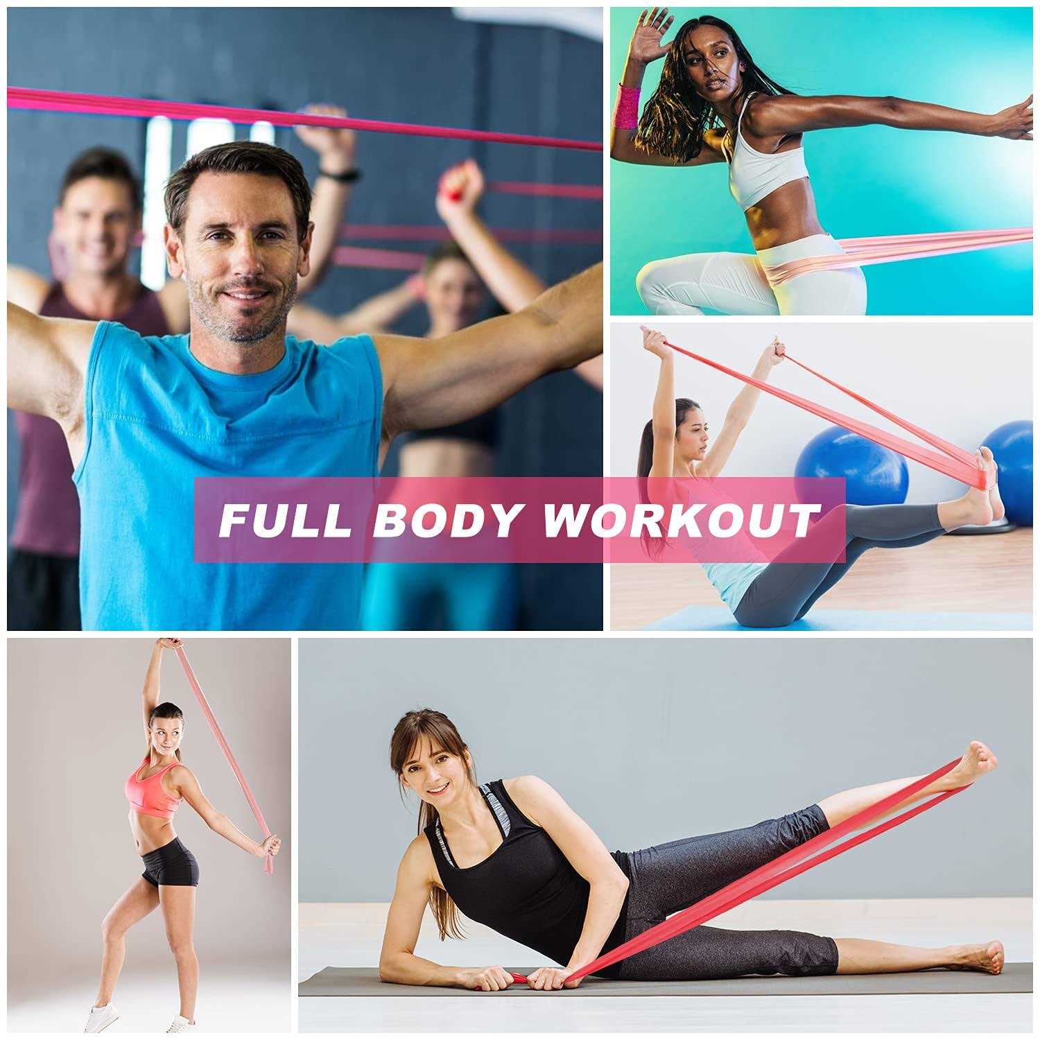 【Durable and High Resistance】Resistance bands are made of TPE, skin friendly, non-toxic and latex free, people with latex allergies can use it safely. You can wrap them around your hand a few times for more tension and a secure grip, or tie a knot and use them as loops, you can also double them up for more resistance. 【5 Resistance Levels】Offer a lot of versatility with 5 levels of resistance(5-25lbs). You can easily tailor your training depending on your strength, ability and comfort, no matter you are a beginner or experienced users. it’s a perfect choice for Yoga, Pilates, Fitness, Losing Weight, Physical Therapy, Strength Training, Rehabilitation, Wrestling, Bodybuilding, Increase Flexibility. 【Lightweight and Easy To Use】Our resistance band is lightweight, comes with a carrying pouch, it’s easy to carry and does not take up much space. Portable design exercise band allows you can do exercise anywhere, such as home, gym, office, hotel, beach and travel and