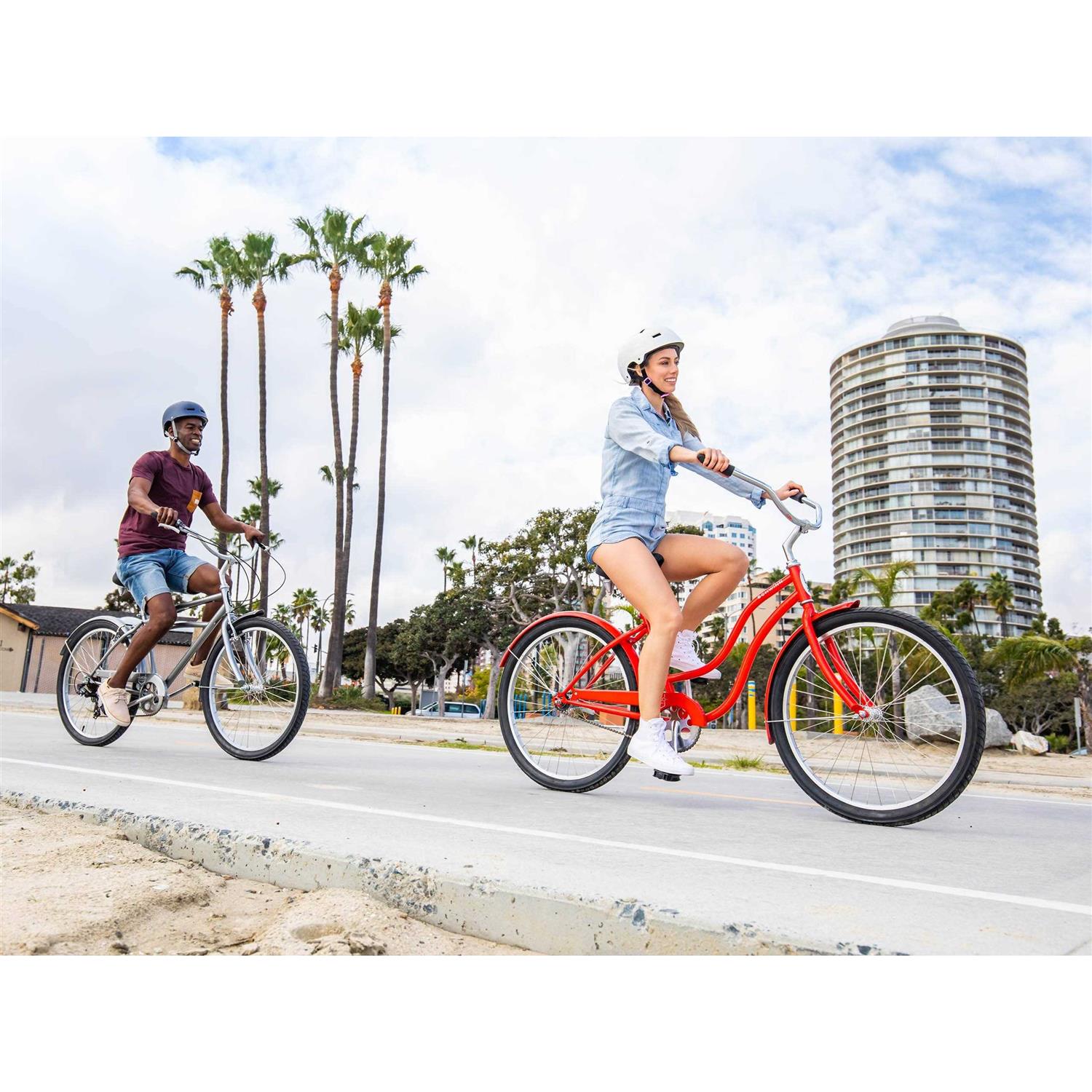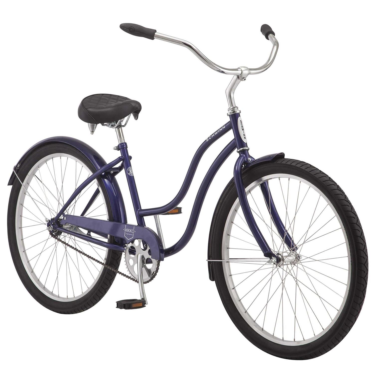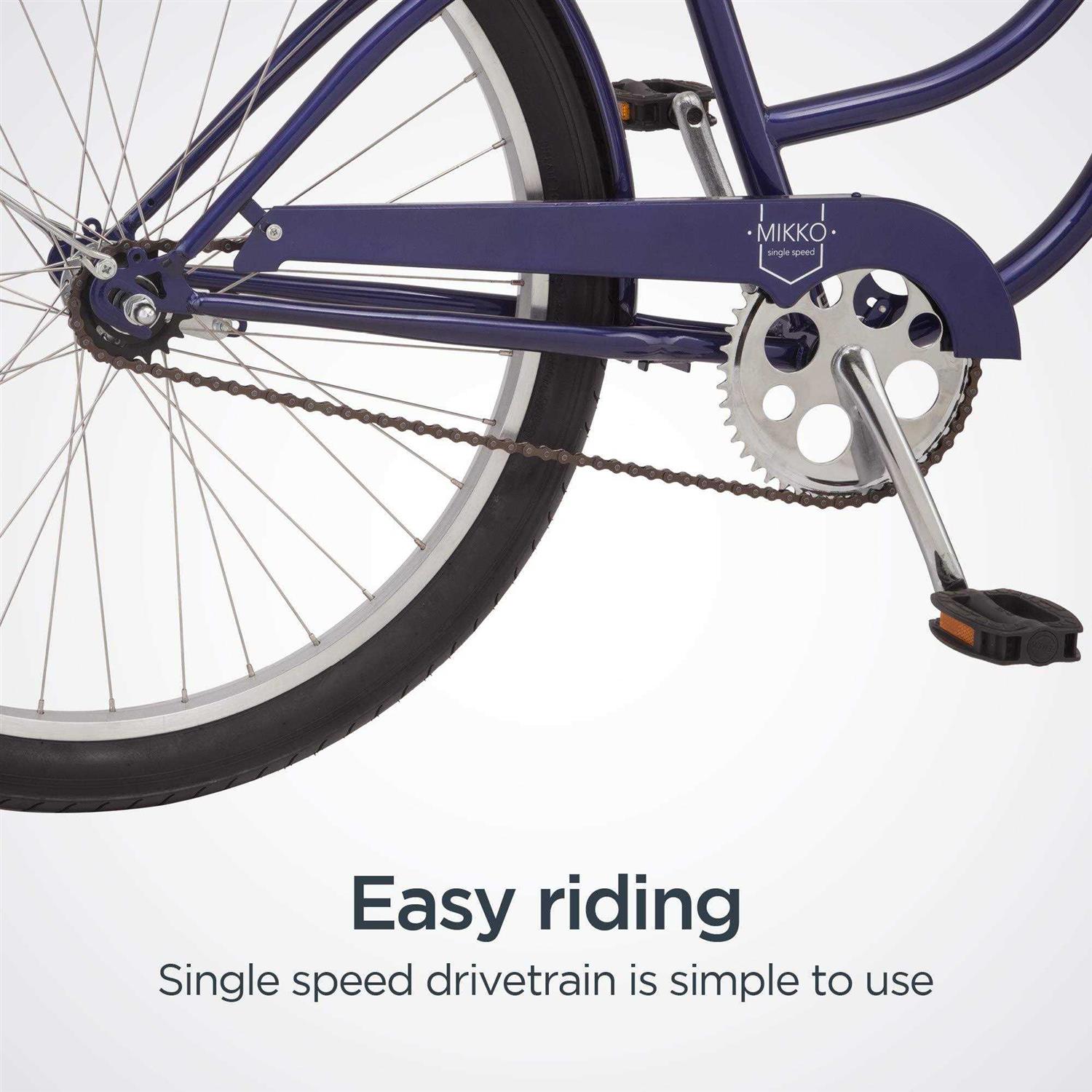High style is just a pedal away with the Mikko by Schwinn. This vintage inspired beauty features an elegant cruiser style frame for a picture-perfect ride around town, through the park, or on the beach. The single speed internal drive train is easy to use and maintain. The intuitive rear coaster brake makes it easy to stop with confidence, while the retro fenders protect you from splashes in damp weather. Plus, the classic cruiser handlebar and padded saddle create a comfortable upright riding position.