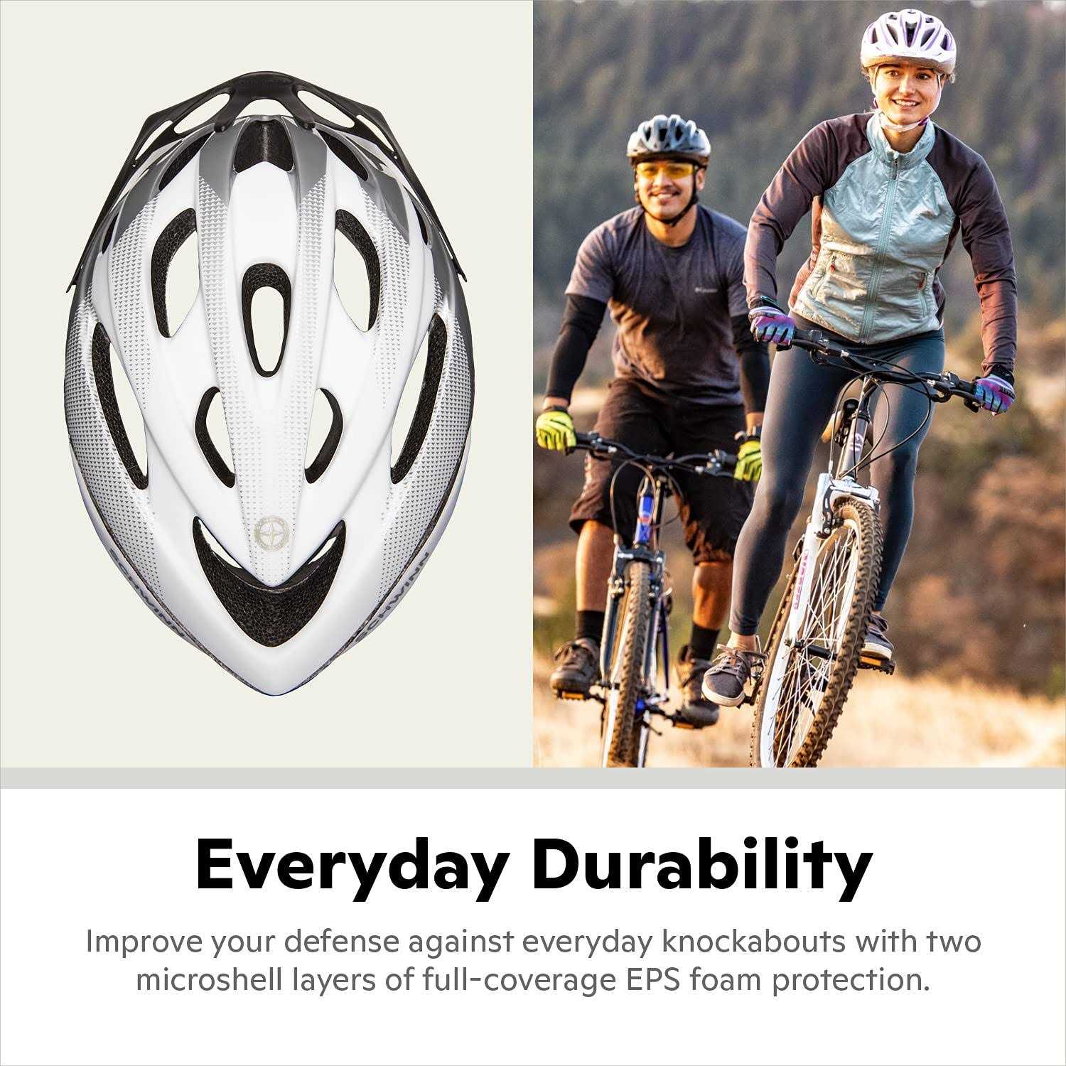 Schwinn Thrasher Bike Helmet, Lightweight Microshell Design, Adult, White/Silver