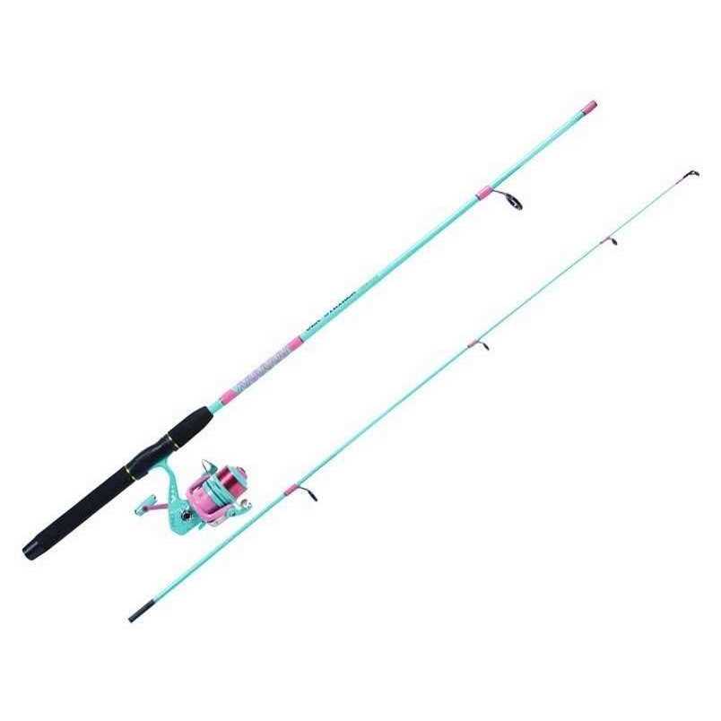 Catch attention and fish with these Shur Strike/Sea Striker pink and teal rods and reels. The teal rod blank is accented with pink wraps. EVA foam grips are lightweight and comfortable. Graphite reel seat features stainless steel hoods. Shur Strike/Sea Striker pink and teal graphite reels have one ball bearing and come filled with pink monofilament.