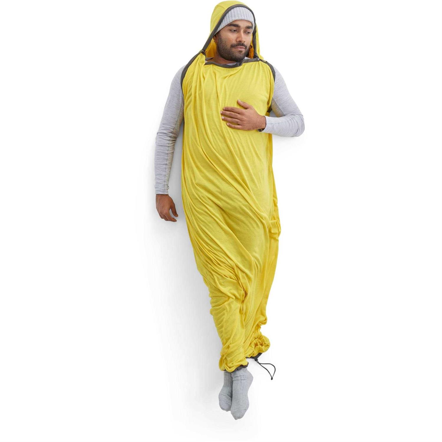 Insulated sleeping bag liner adds extra warmth and personal hygiene to any sleeping bag. Thermolite Pro technology using knitted, hollow-core fibers and absorbing infrared ceramic pigments to reflect your body’s heat back to the wearer for enhanced warmth and comfort Drawcord footbox can be opened or closed for optimal comfort and integrates perfectly with the footbox of our Free-Flow Zip system in select Sea to Summit sleeping bags HeiQ Fresh odor control technology helps keep the liner fresh even after extended use Knitted fabric provides incredible stretch and freedom of movement in this mummy-shaped liner and works seamlessly with sleeping bags of any shape, Sea to Summit Guarantee is offered for the Lifetime of this product Sea to Summit Reactor series insulated sleeping bag liners can extend the comfort range and improve personal hygiene of any sleeping bag. Thermolite hollow core fibers are constructed like the fur of a polar bear, efficiently trapping heat and providing a luxuriously soft, comfortable feel. The stretch-knit fabric provides optimal comfort, and ensures the Reactor fits any sleeping bag. Additionally, the drawcord footbox offers plenty of ventilation and the versatility of walking around camp while still wearing your liner. Available in three different weights, Reactor technical liners make your existing sleeping bag warmer and more versatile. The Regular Liner uses hollow-core Thermolite Pro fabric with infra red-absorbing ceramic pigments and Thermolite EcoMade fibers. This lightweight fabric adds up to 14F of warmth to your sleep system. The Extreme Liner features a thicker hollow-core Thermolite Pro fabric to add up to 25F of warmth to your sleep system. The Fleece Liner employs hollow-core Thermolite Pro fibers in a grid-pattern to deliver our warmest sleeping bag liner which adds up to 32F of warmth to your sleep system.