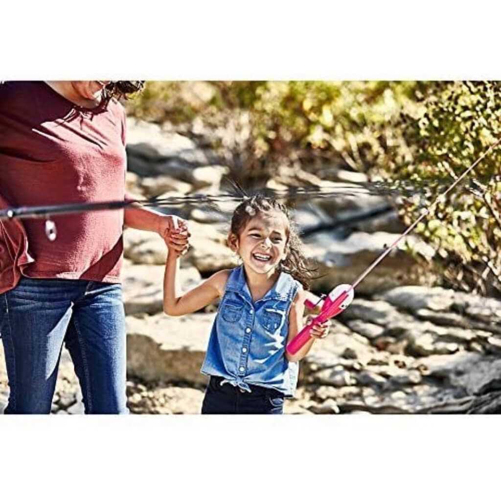 Get your little angler out on the water and excited about fishing with the Shakespeare Barbie Kit. Adorned with fun and colourful Barbie illustrations, this all-in-one fishing rod and reel combo has a 0.6m length specifically designed for children. This fishing rod features a round knob that’s easy to grab, a thumb button extension for easy casting, and a finger guard to help encourage proper hand placement. A practise casting plug is included, so your budding angler can practise with the fishing rod in the backyard before heading out to the lake.