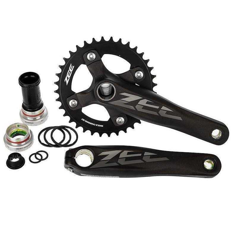 Shimano Zee M640 10 Speed Crankset Durable, reinforced crankset – the thick wall aluminum construction on the Zee two piece cranks and reinforced steel axle translate to additional confidence on the trail. With an axle 30% stronger than comparable trail cranks and smooth running, accurately aligned chain wheels, the Zee crank will perform reliably – run after run. The crank arm features outboard bearings and steel pedal inserts. Shimano introduces Zee, a new line of gravity components that are an ideal starting point for aggressive riders and racers. Zee is the gateway gravity component line that allows riders to get on board with Shimano’s gravity program and experience premium new component technologies at a price they can afford. Please note, external Hollowtech II Bottom Bracket is included.