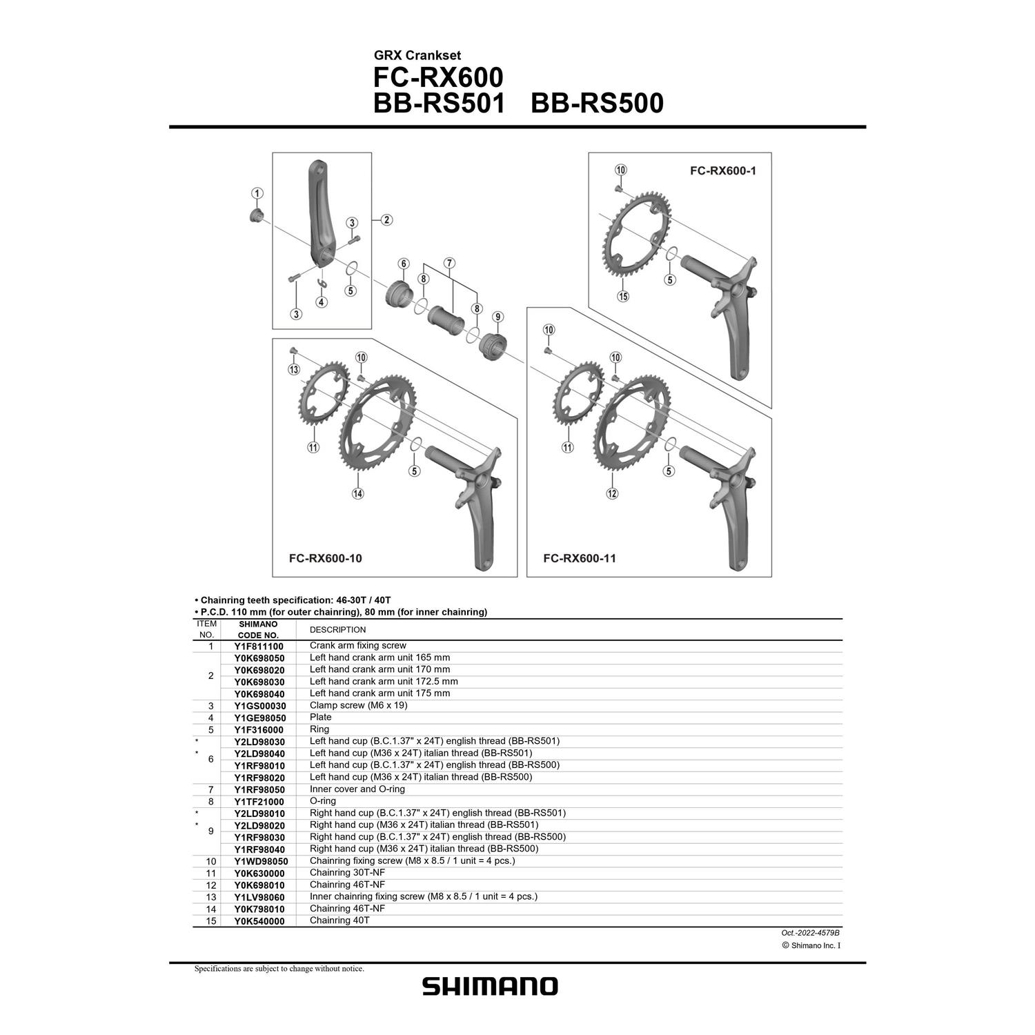 Shimano GRX FC-RX600-11 46/30t 11-Speed Hollowtech II 170mm Crankset