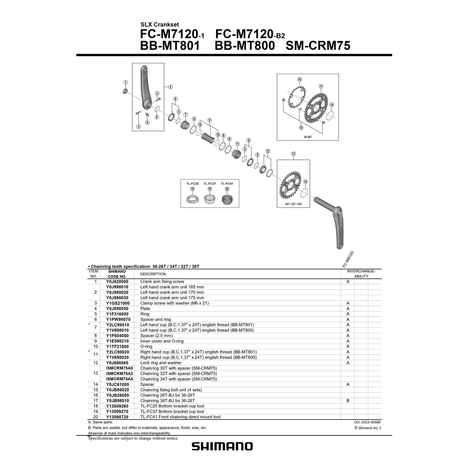 The Shimano SLX FC-M7120 crankset for MTB features a rigid and lightweight design that boosts trail-riding enjoyment. The simplicity of a 1x drivetrain with the stability and compatibility of Hollowtech II technology. TL-FC41 Tool not included. 1x Chainring sold separately. Hollow forged crank maximizes power transfer while limiting weight. Shimano’s Hollowtech II technology provides the best balance of stiffness, strength, weight and rotating performance. 55mm chainline. 178mm Q-factor.