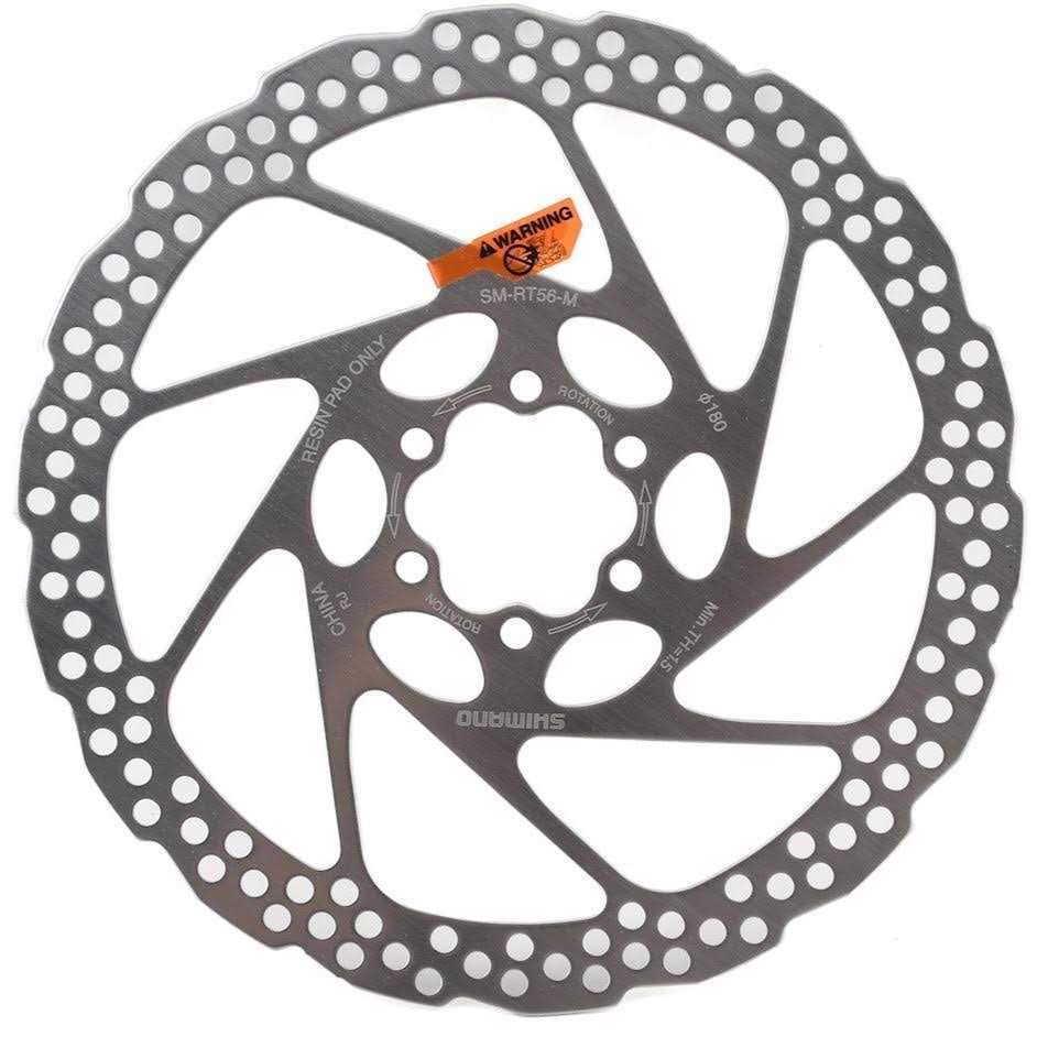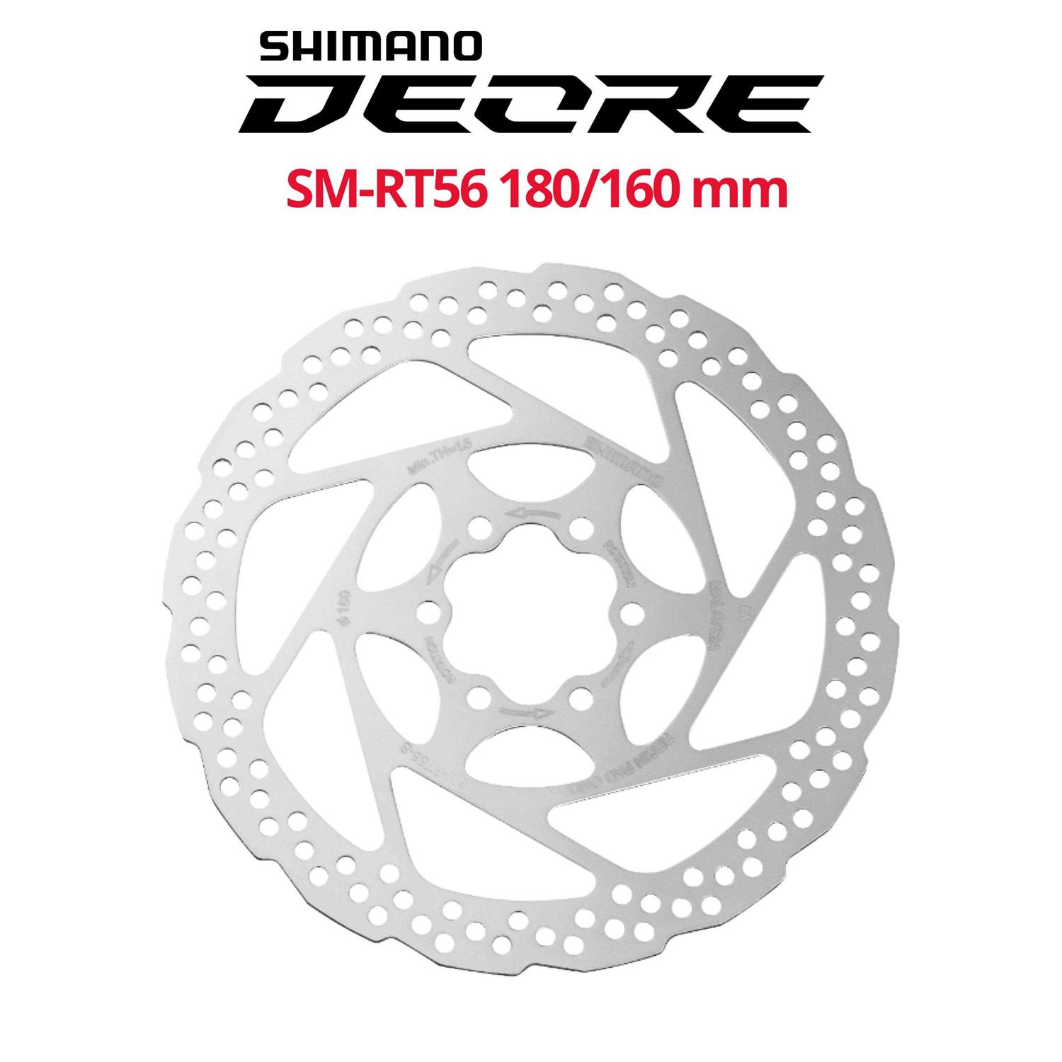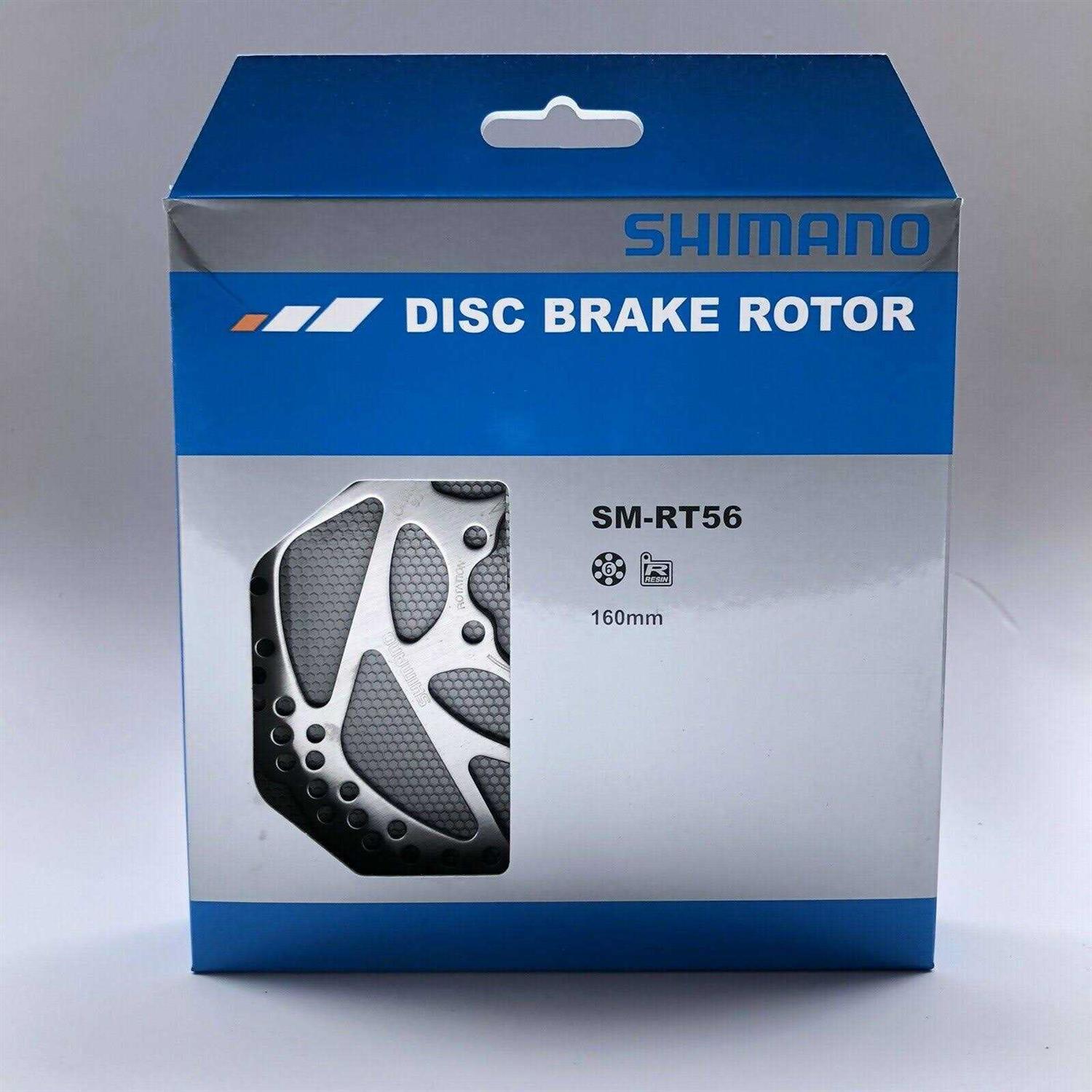 Shimano RT56 Disc Brake Rotor The Shimano SM-RT56 6-bolt brake rotor consists of one-piece moulded stainless steel, which has also been heat-treated and polished. It is available in 160 mm and 180 mm diameter and can be used for XTR, XT, SLX, Deore and many other MTB and City & Touring brakes. Note that SM-RT56 is only compatible with organic brake pads.