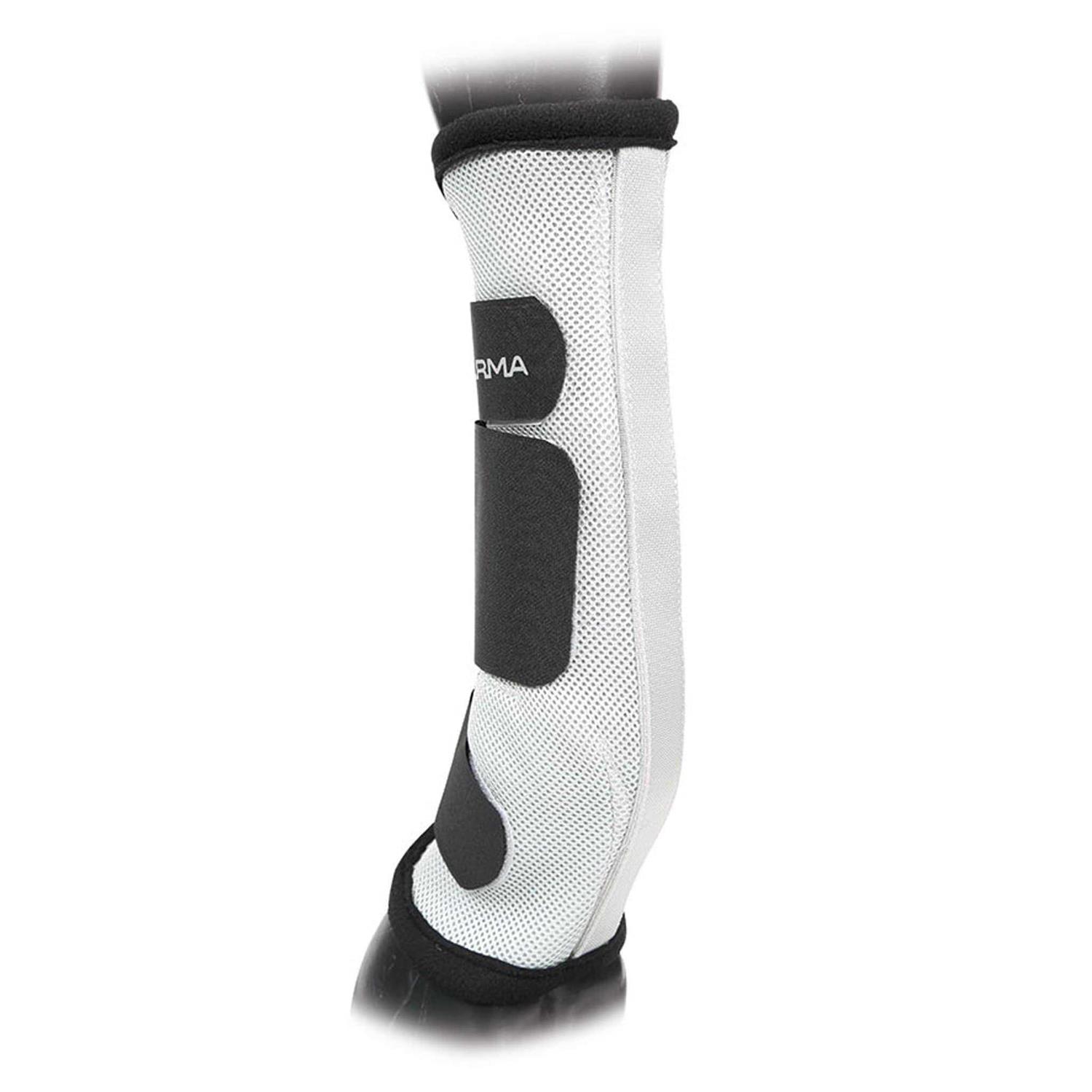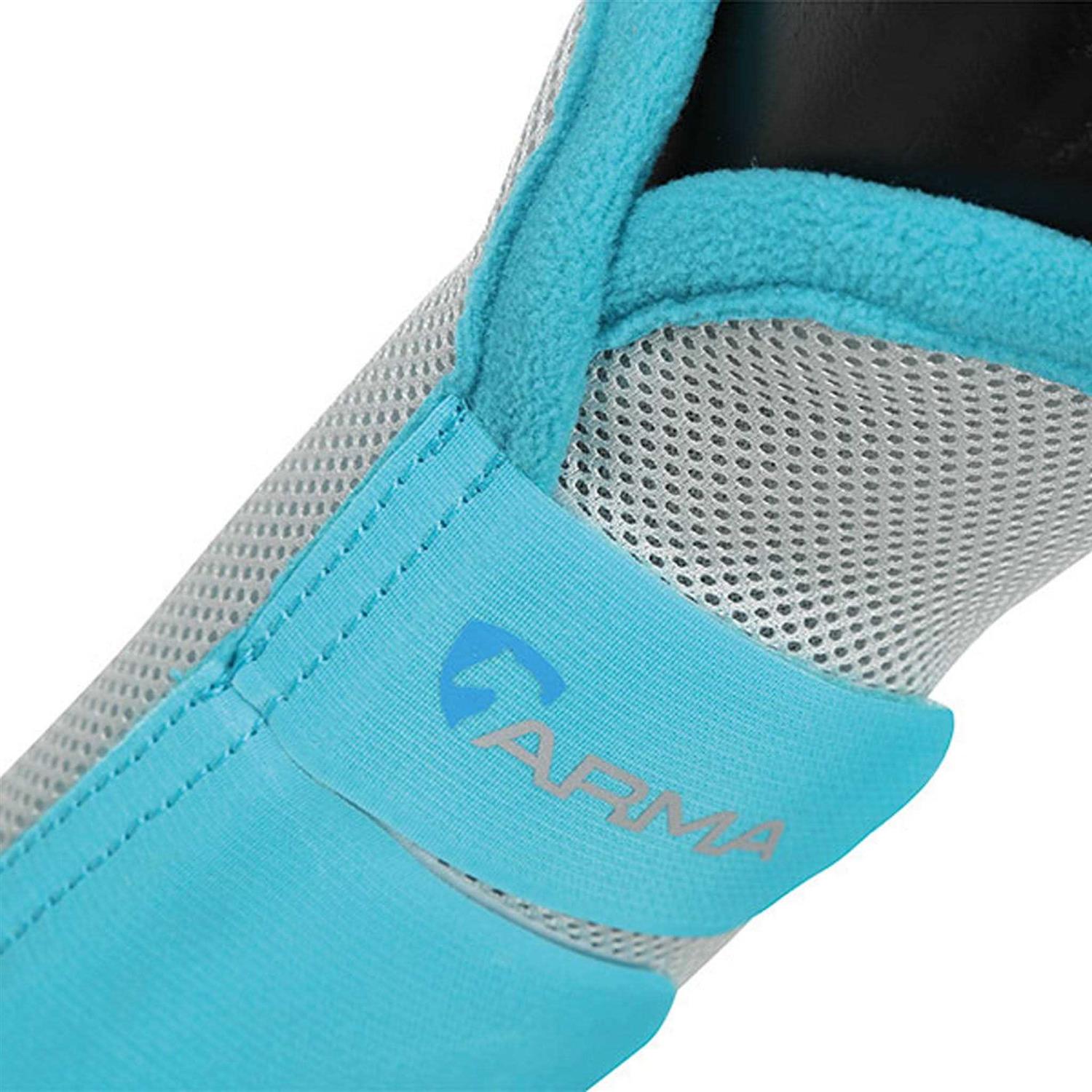 Shires ARMA Fly Turnout Socks are specially designed from airflow fabrics to keep bothersome flies and biting insects off the legs. They have a stiffened vertical seam for a secure fit. Made from lightweight fabrics with ergonomic shaping and fleece bound edges for superior comfort. Fastens with touch close straps. Sold in sets of 4. Sizes: Pony, Cob, Full. Colours: Black, Teal.