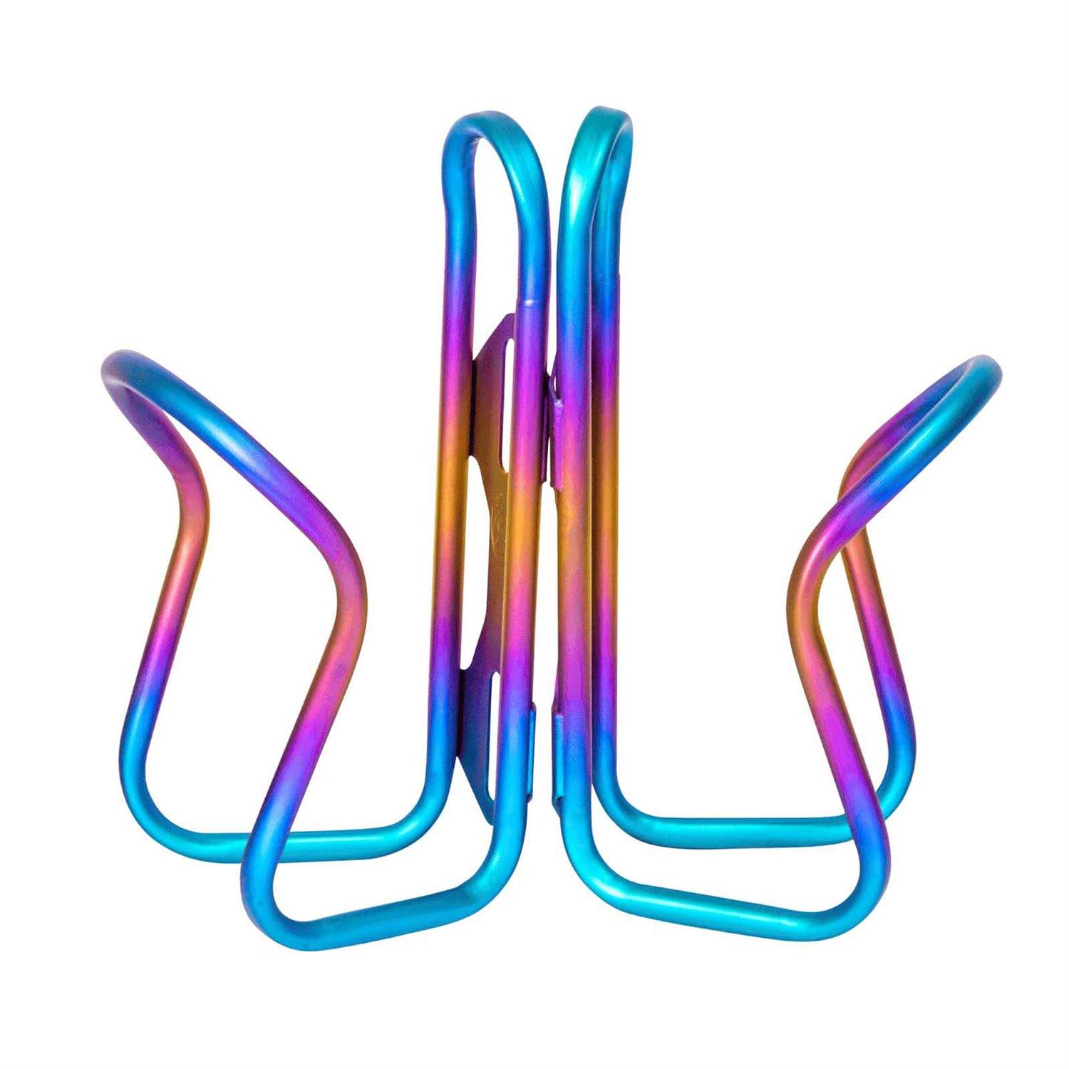 Never lose a bottle again with these incredible titanium bottle cages This lightweight design doesn’t mark your bottles, allows easy access, and holds your bottles on the worst terrain. This combination of design characteristics produces a cage that has better retention on gravel and other harsh surfaces and has proven to be the superior design when mounted on the underside of the down tube, so common in adventure riding and touring. While classic in appearance, this material, and its manufacturing are as complex and high tech as it gets. Features Single Cage Anodized finish Seamless 3-2.5 titanium tubing Real weight: 31 g 21mm fore/aft adjustment Hand bent in Indianapolis Easy in-and-out Extremely secure design Laser welded Bolts are not included. Producer’s notes:Oils from your hands and fingers can change the anodized color. To revive color and/or clean the cages (and straws), use rubbing alcohol and a soft cloth. Do not use abrasive products, this will damage the anodized finish. Please note that anodized titanium is only as hard as the titanium itself, and is less hard than many types of sand or abrasives found in sand and soil, including aluminum oxide and garnet which are naturally occurring and are harder than steel.